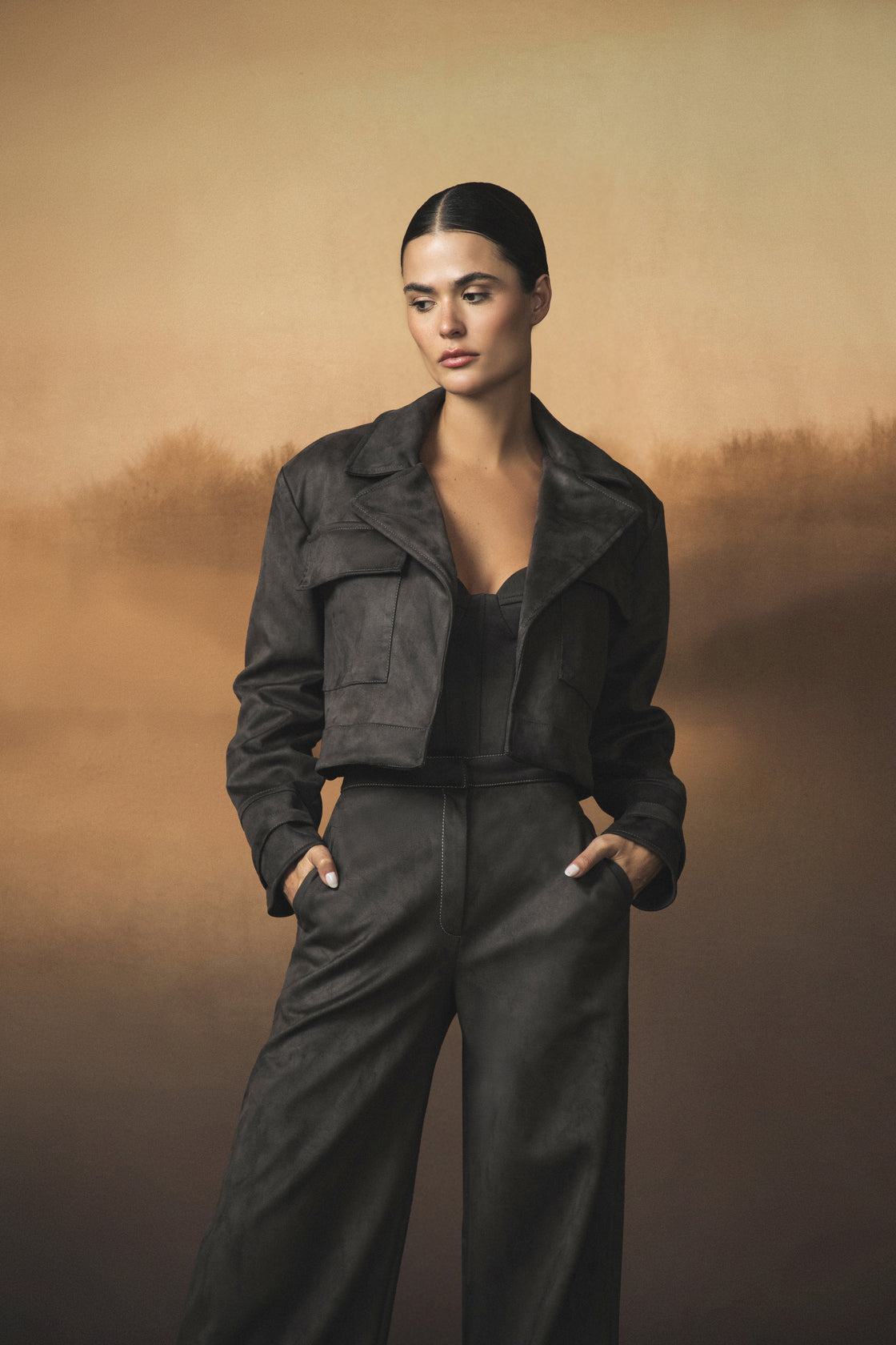 Pants made from 100% polyester suede. Its soft texture and sepia tone evoke calm and sophistication. Ideal for elevating any look with ease.