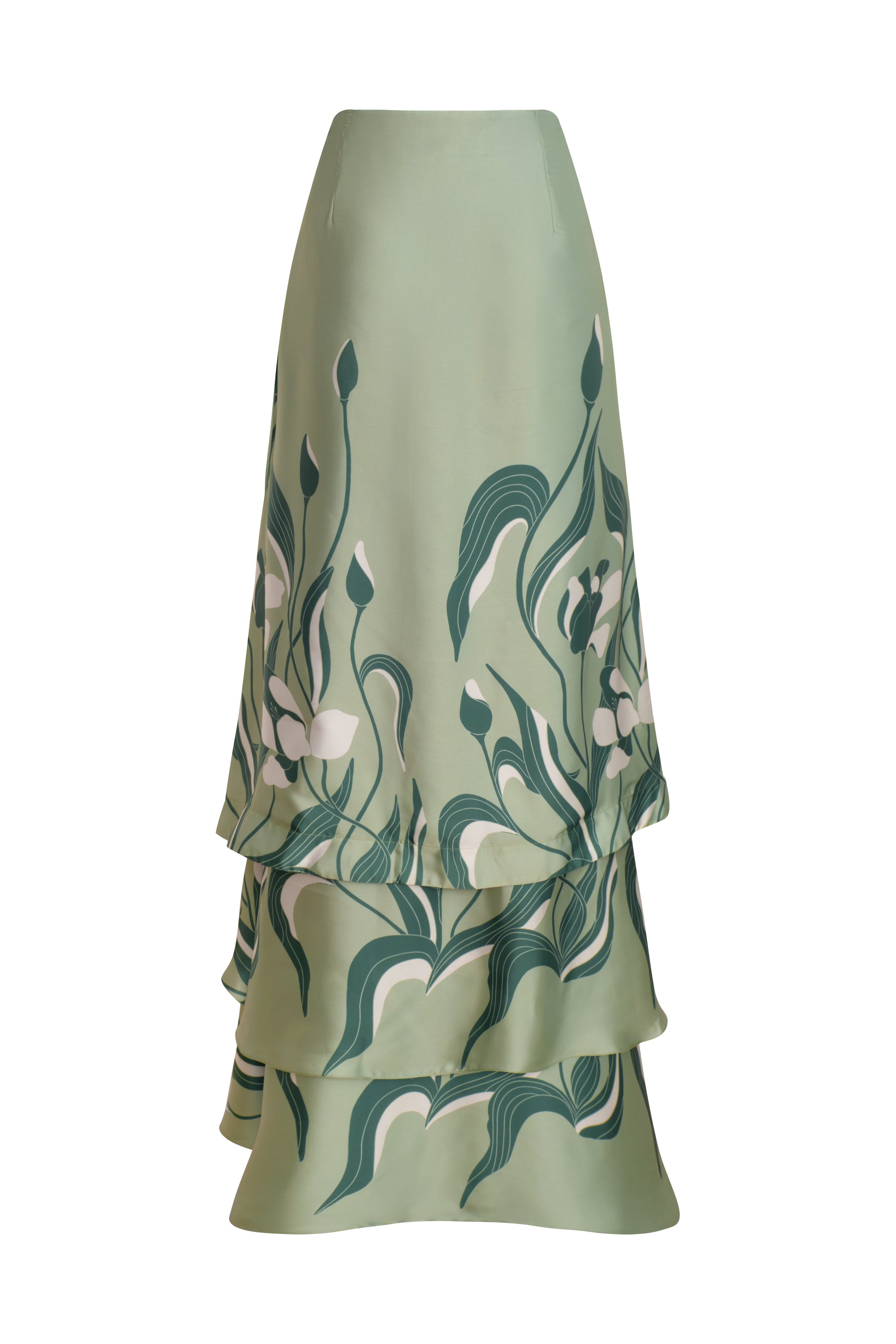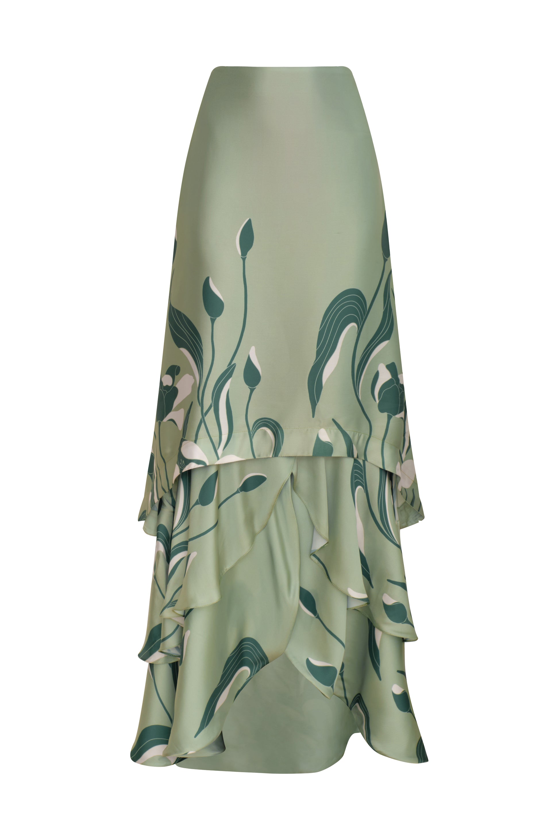De Tulipanes Maxi Skirt, in soft sage green and blooming with subtle charm. Its flowing silhouette and airy volume create effortless elegance with every movement.