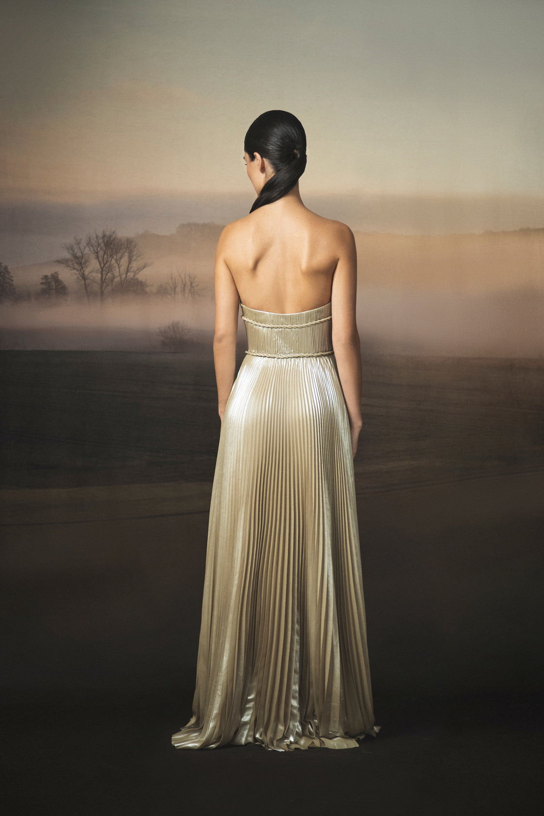 Eterna is a Maxi dress crafted from golden chiffon. Inspired by the warmth of the sun, it radiates a luminous and timeless elegance.