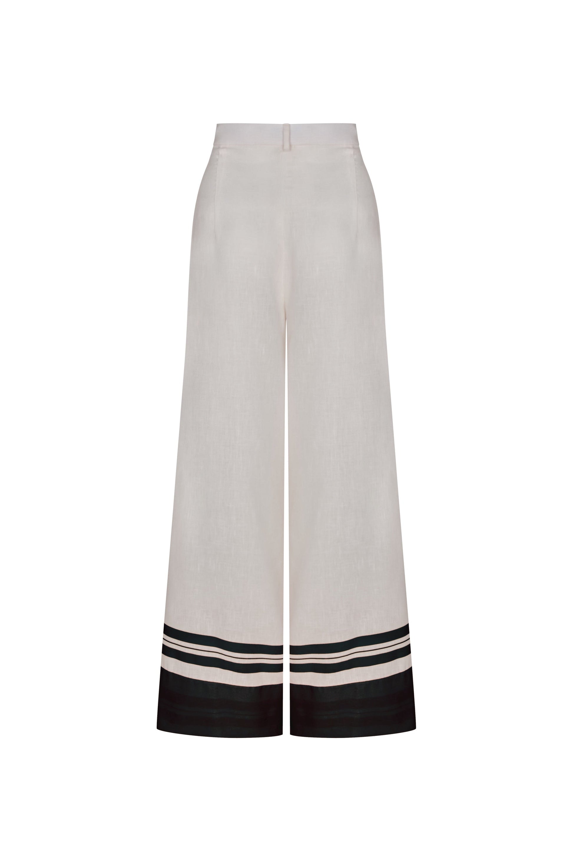Mi Refugio: Classic trousers crafted from 100% linen, with black lines that streamline and add elegance. A timeless choice for refined looks.