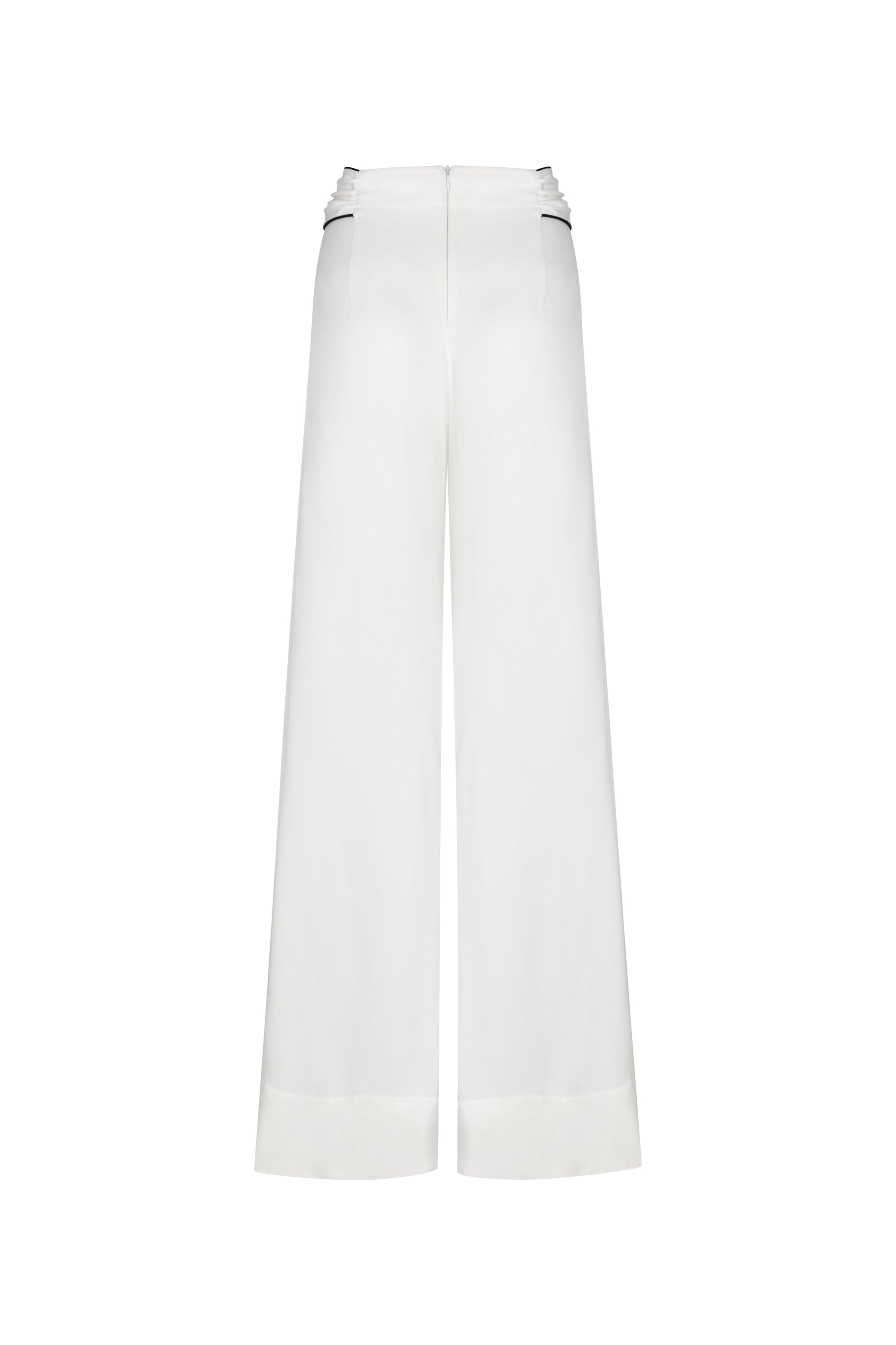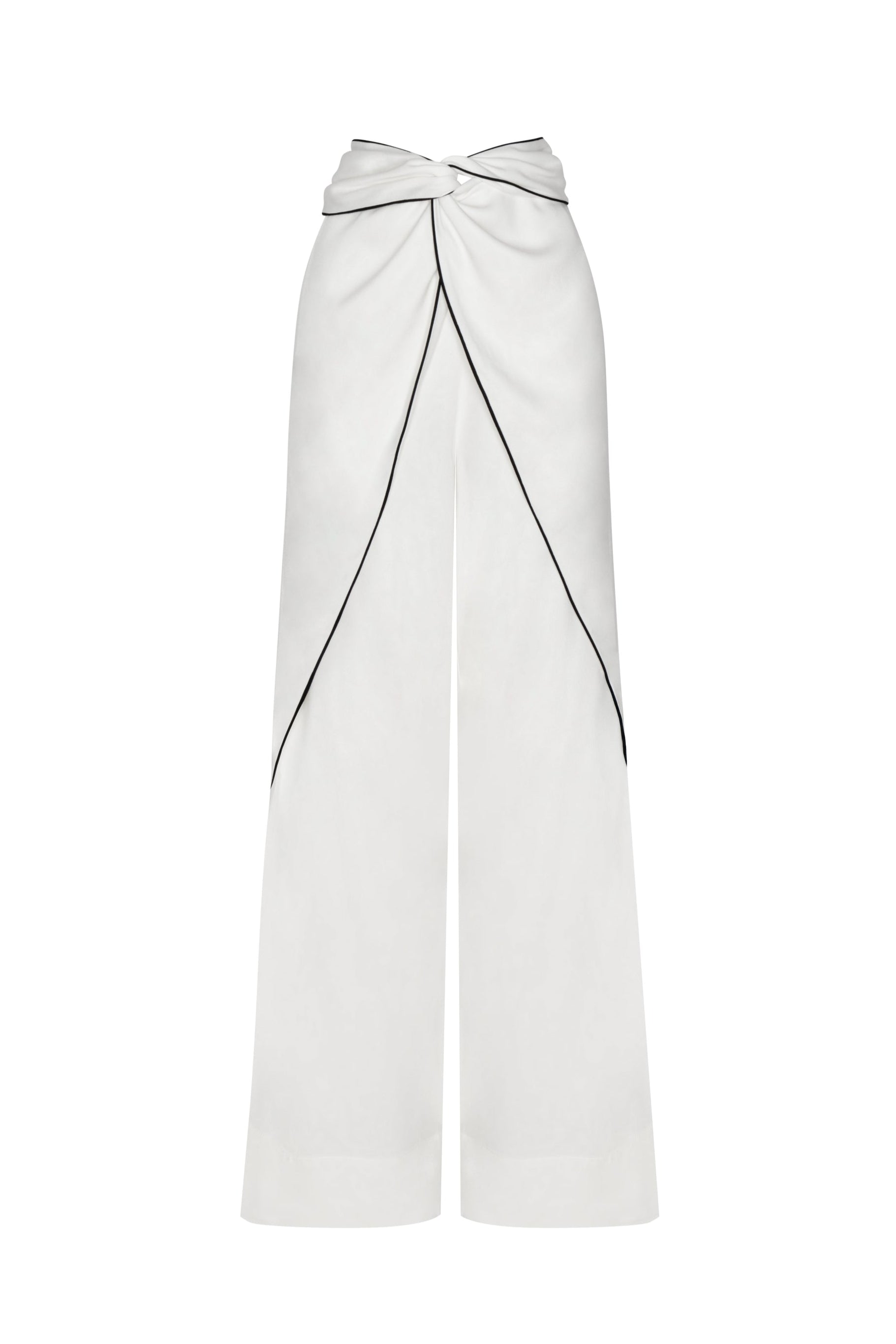 Pants made from 100% rayon. Their soft drape and mix front create a clean, delicate silhouette. Available in Off-White