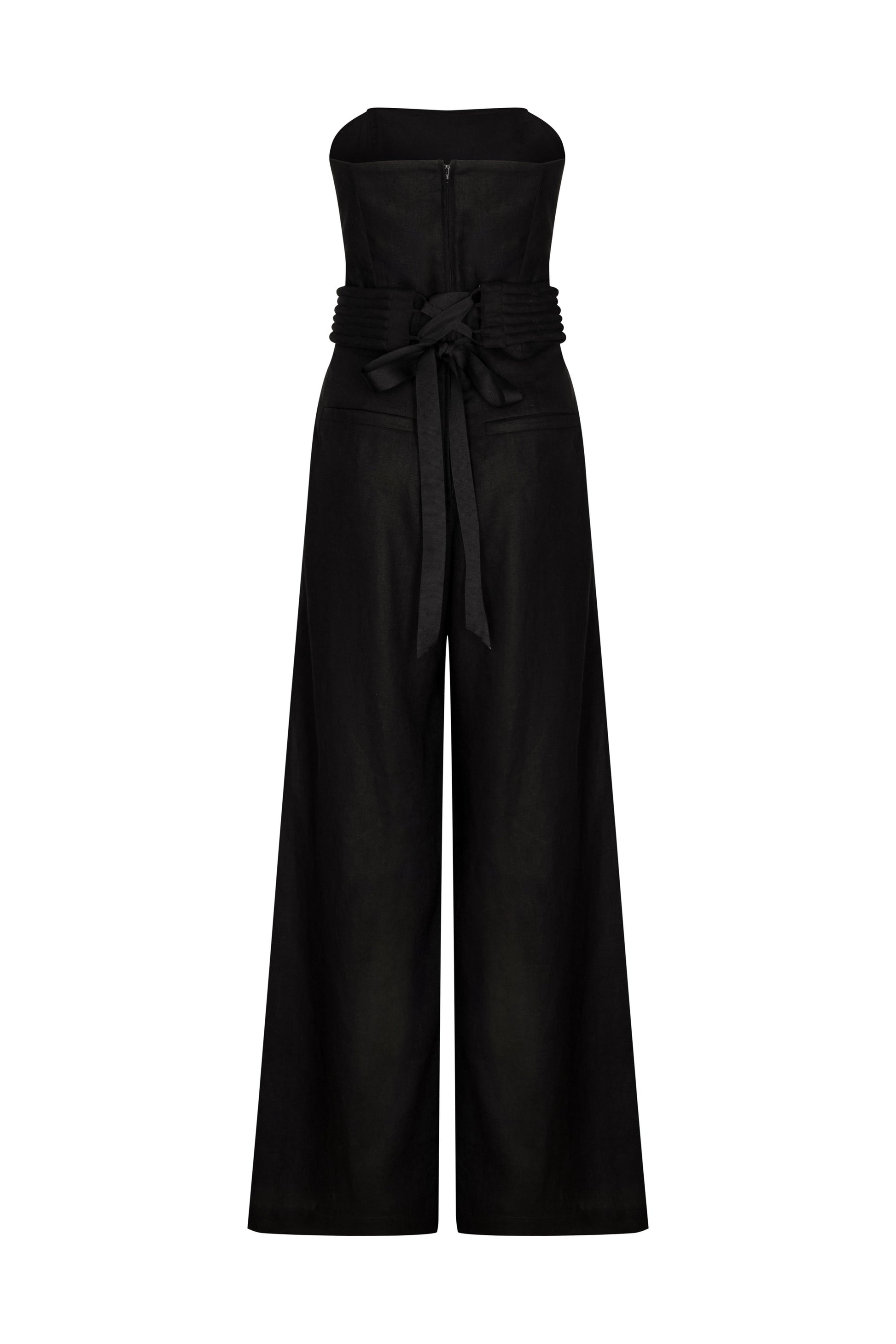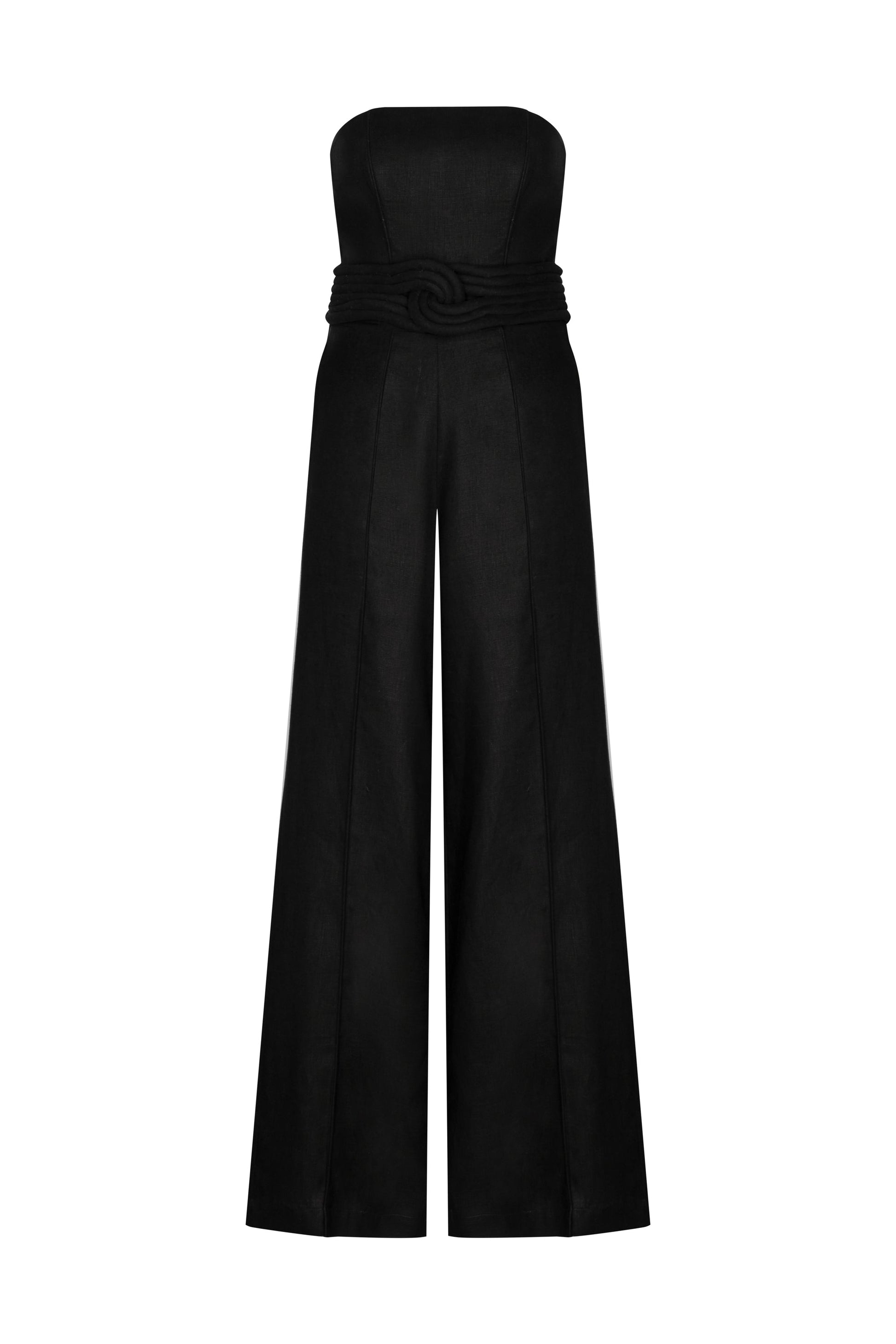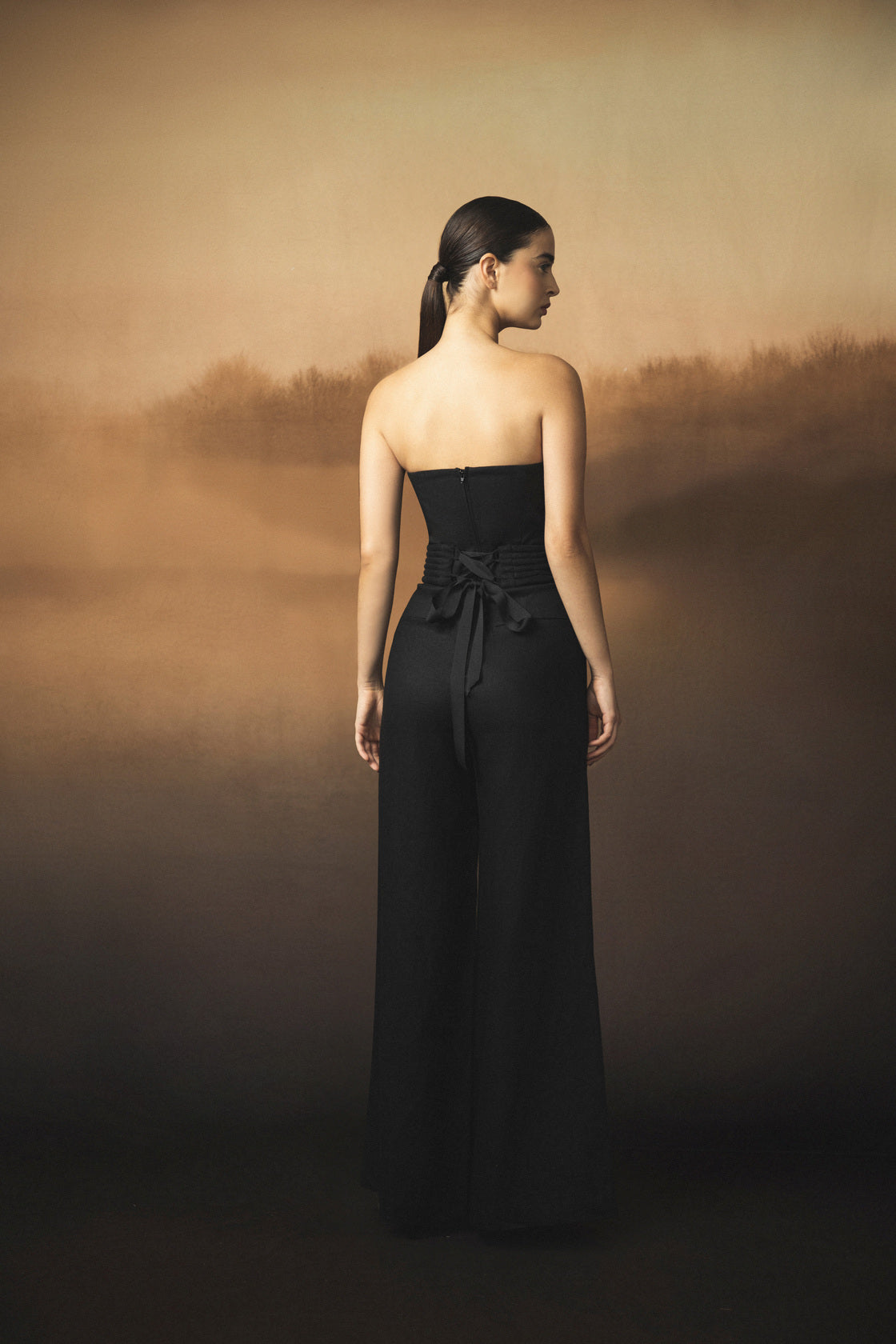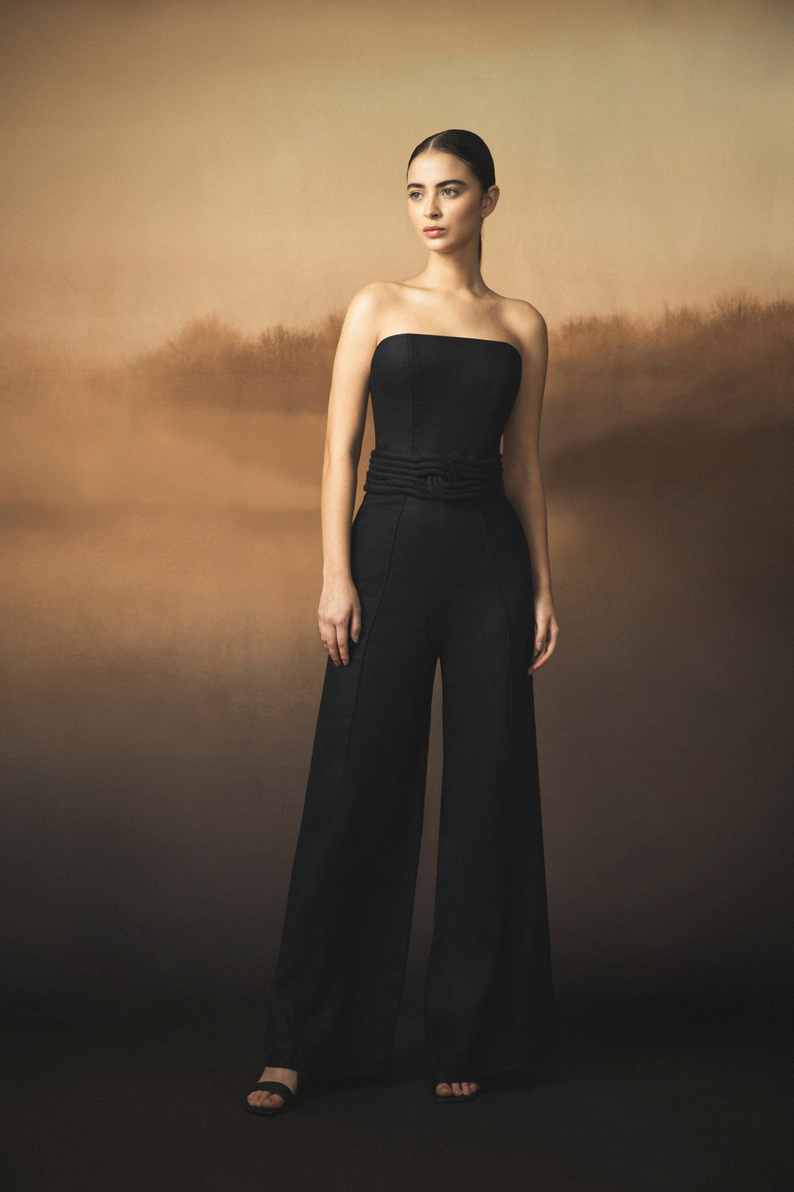 Un Secretito is a strapless, belted linen jumpsuit. Inspired by the natural elegance of everyday life, it effortlessly combines freshness and sophistication.
