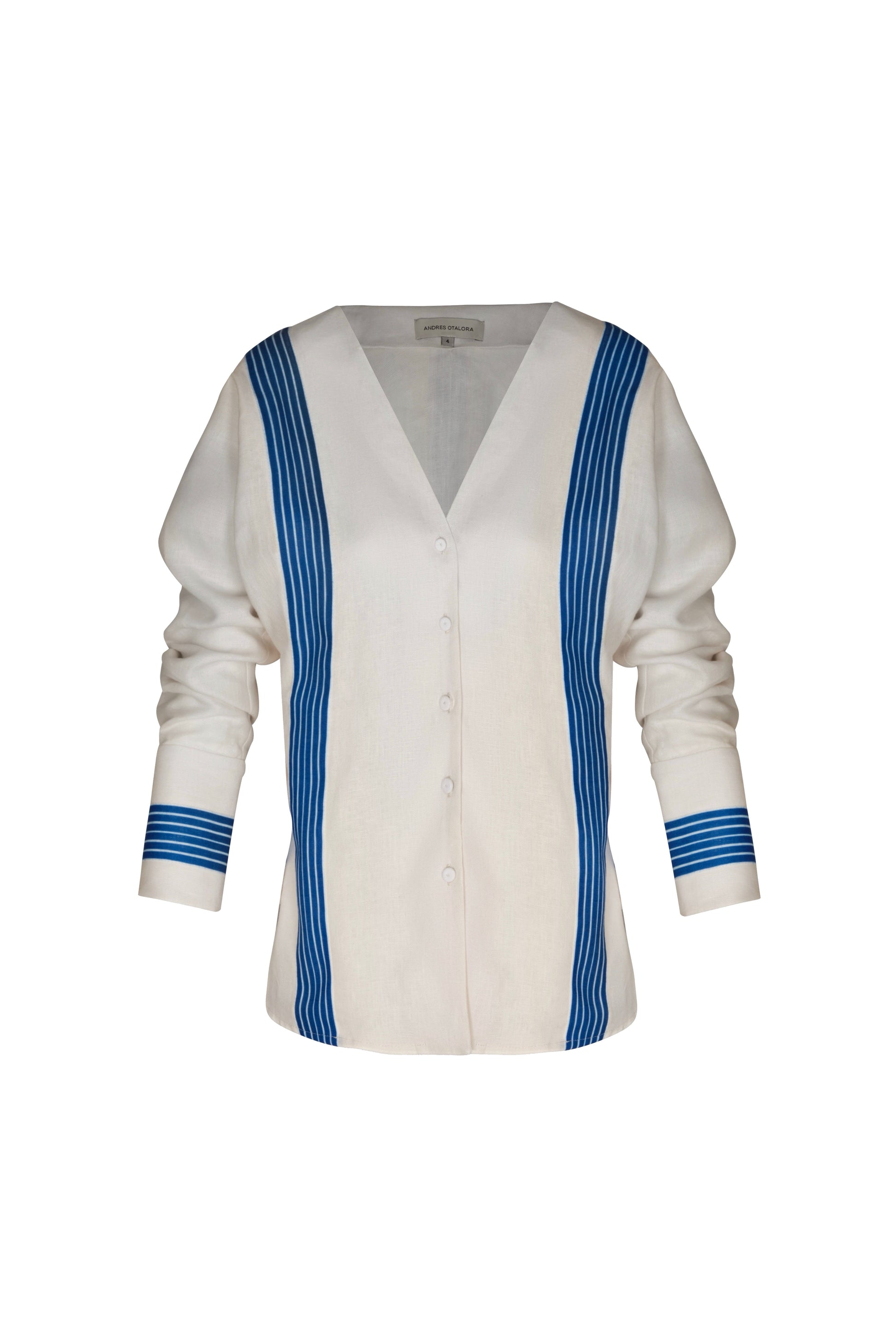Linea Clara is a Blue Pinstripes shirt made of 100% Linen. Make it a classic piece with a delicate and refined air. Its light texture and timeless lines make it a perfect versatile garment.