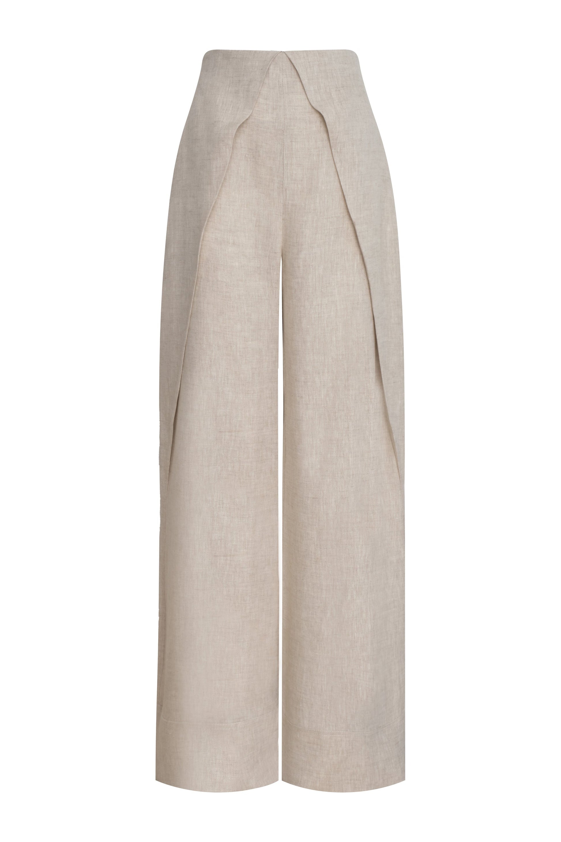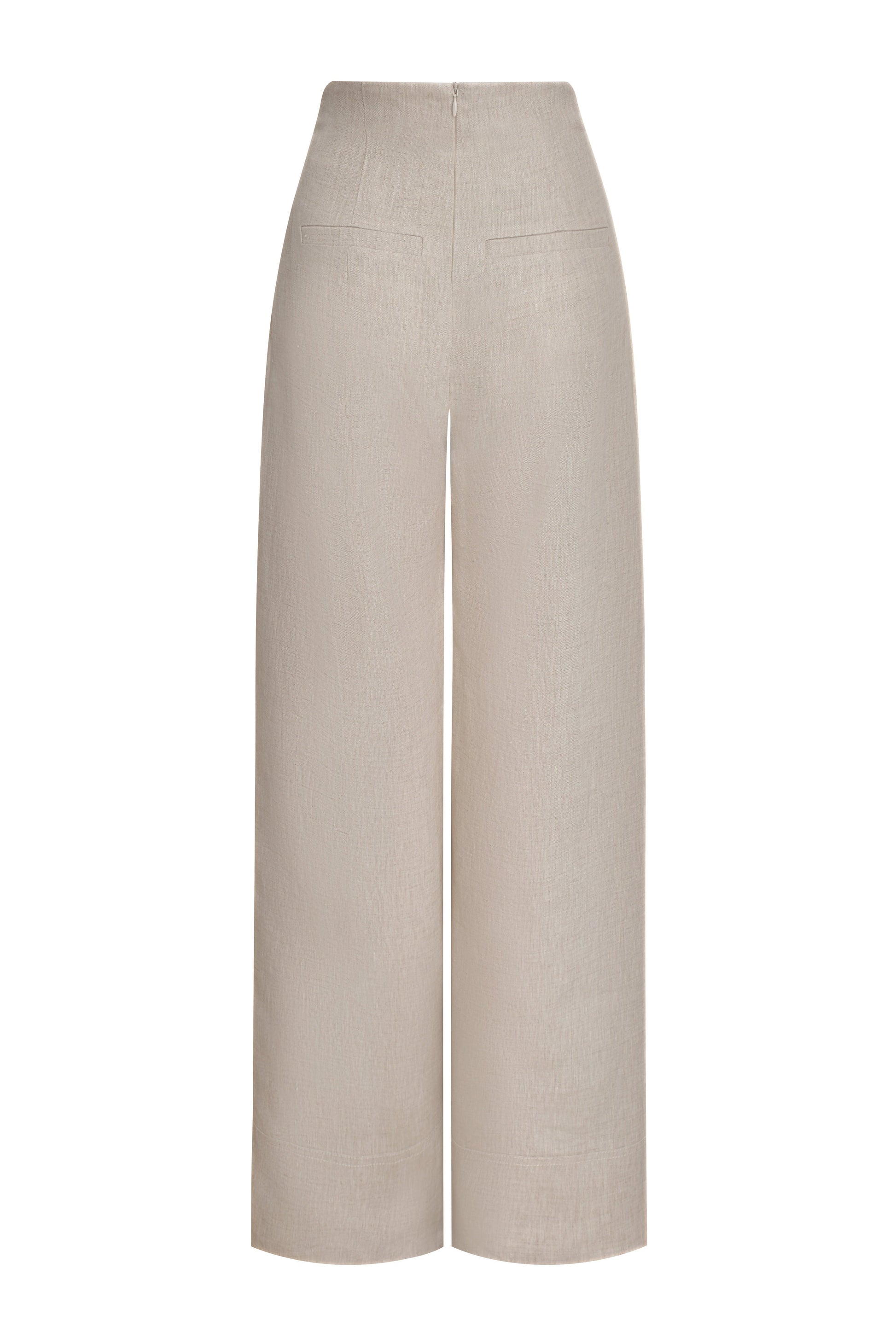Pants crafted from 100% linen in an oatmeal hue. Inspired by the fluidity of natural change, they combine lightness and sophistication in a versatile silhouette for the season.