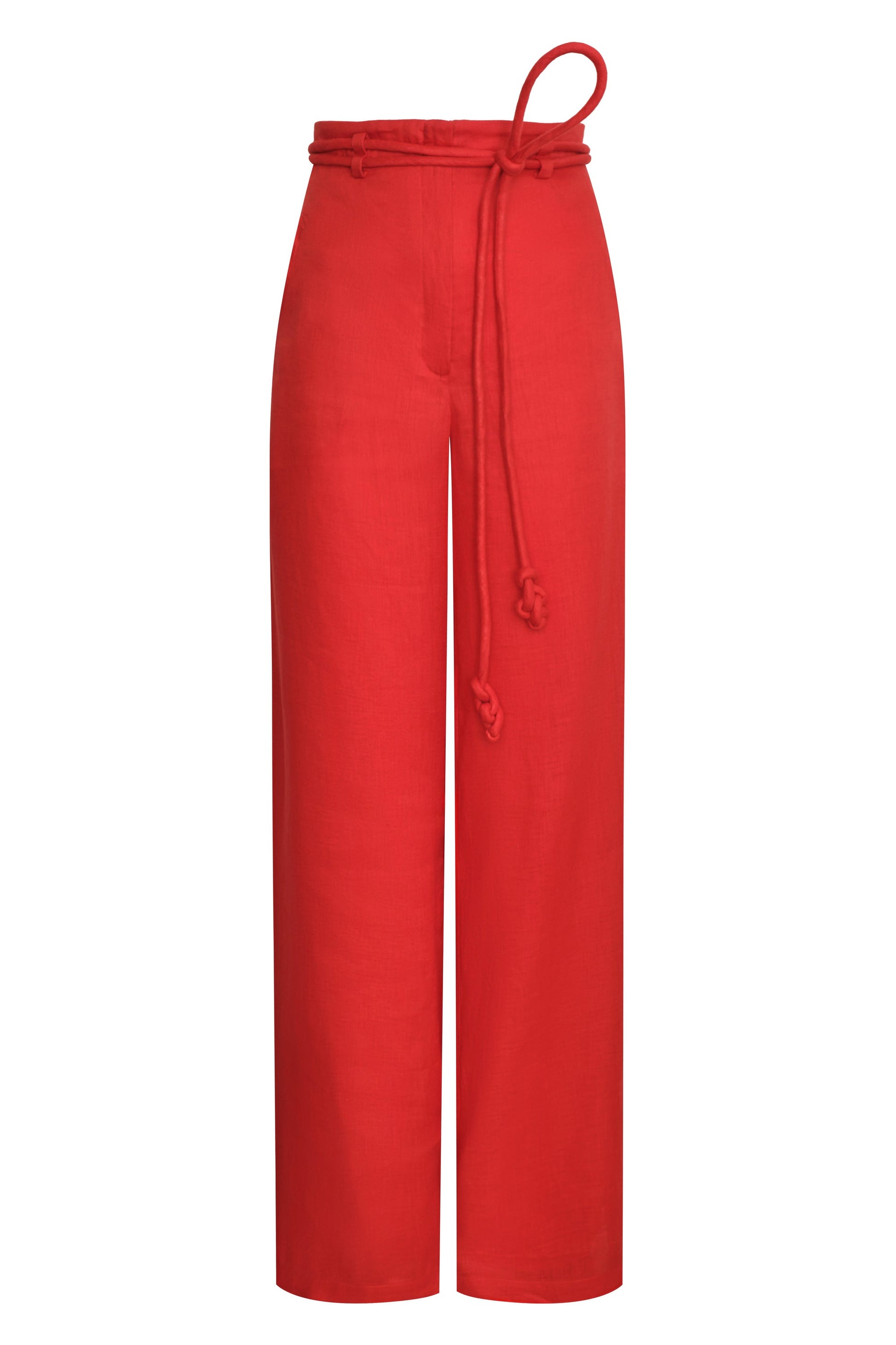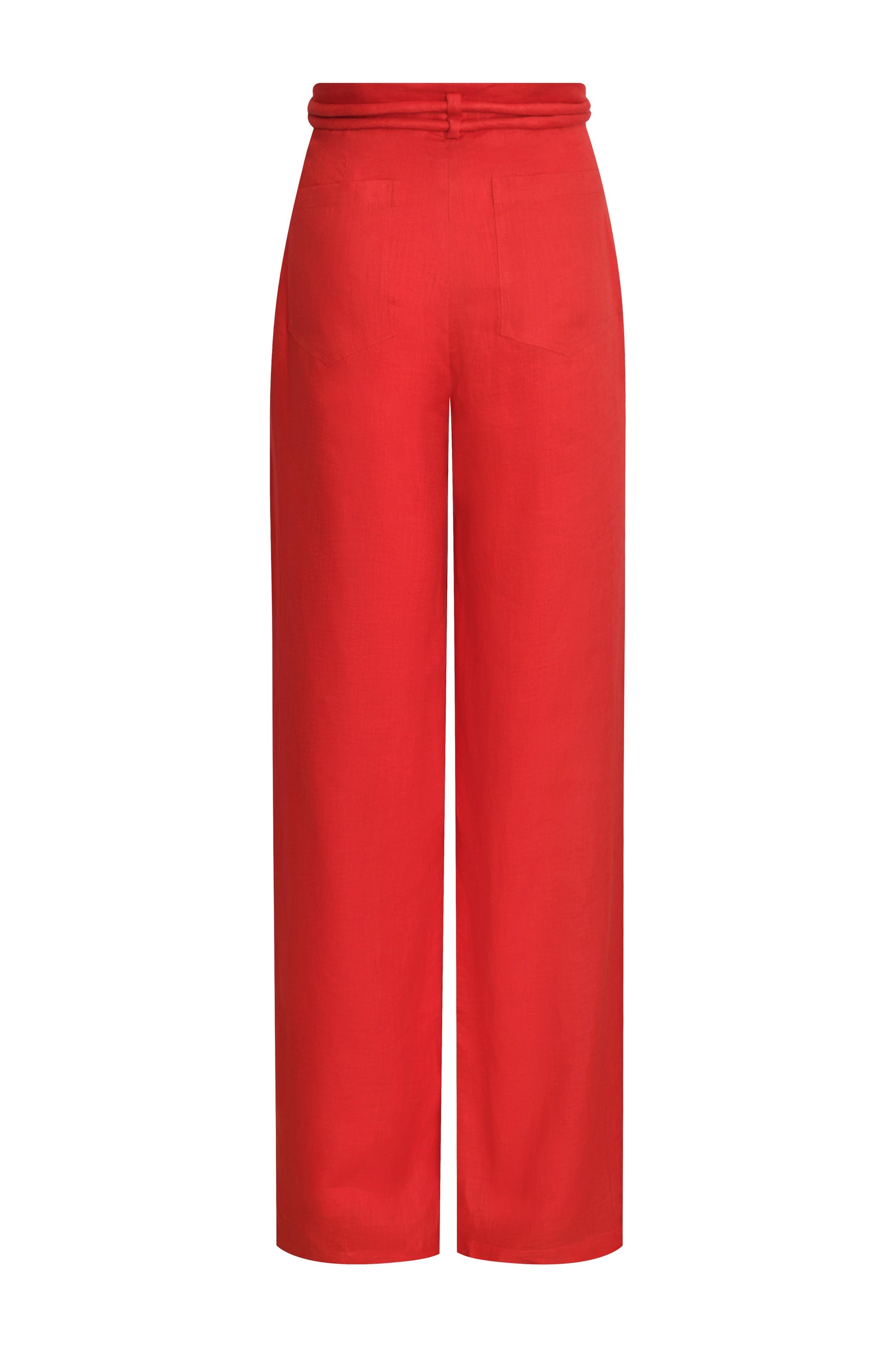 100% linen belted trousers in a vibrant coral hue. A fresh silhouette that evokes energy, warmth, and freedom with every step.