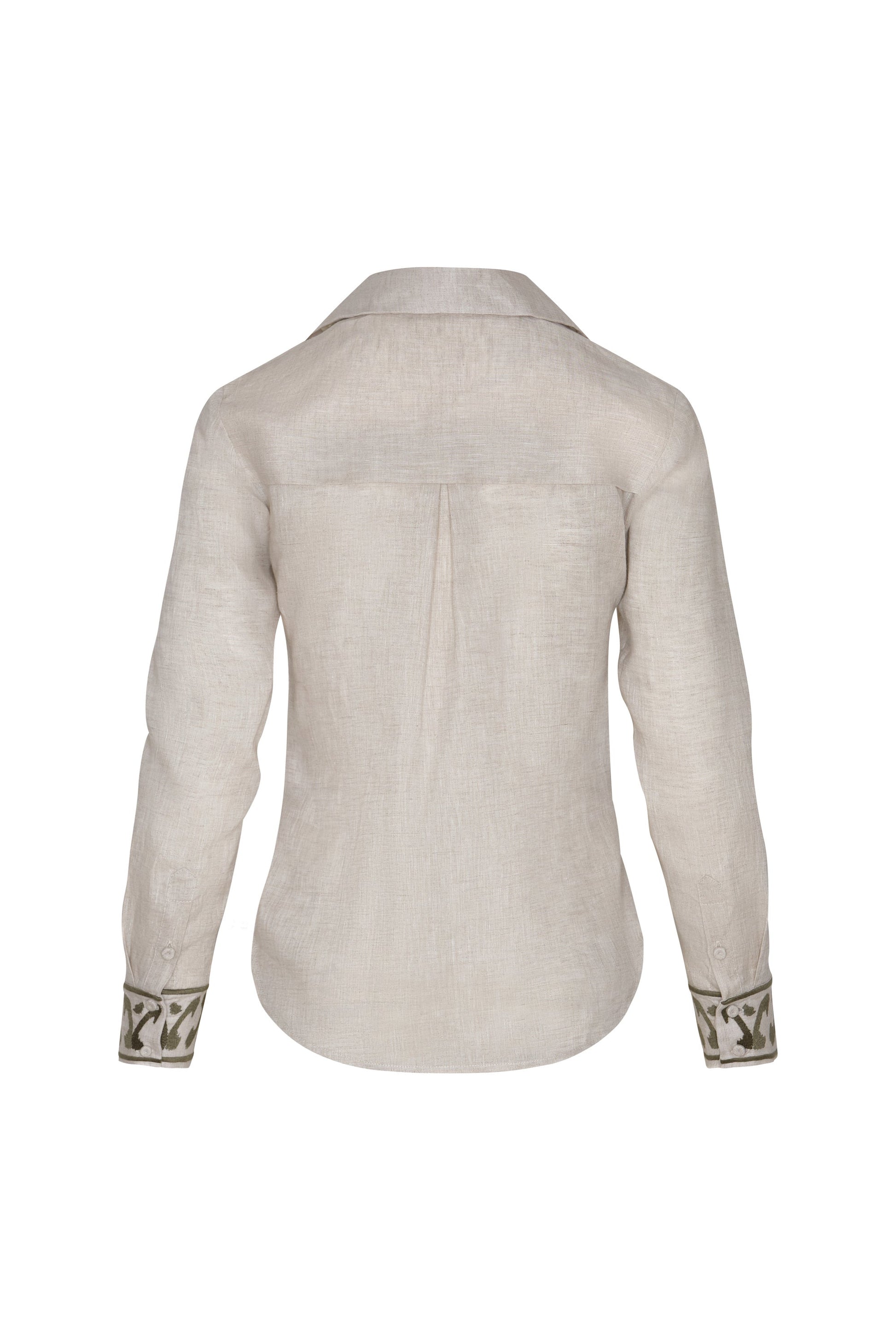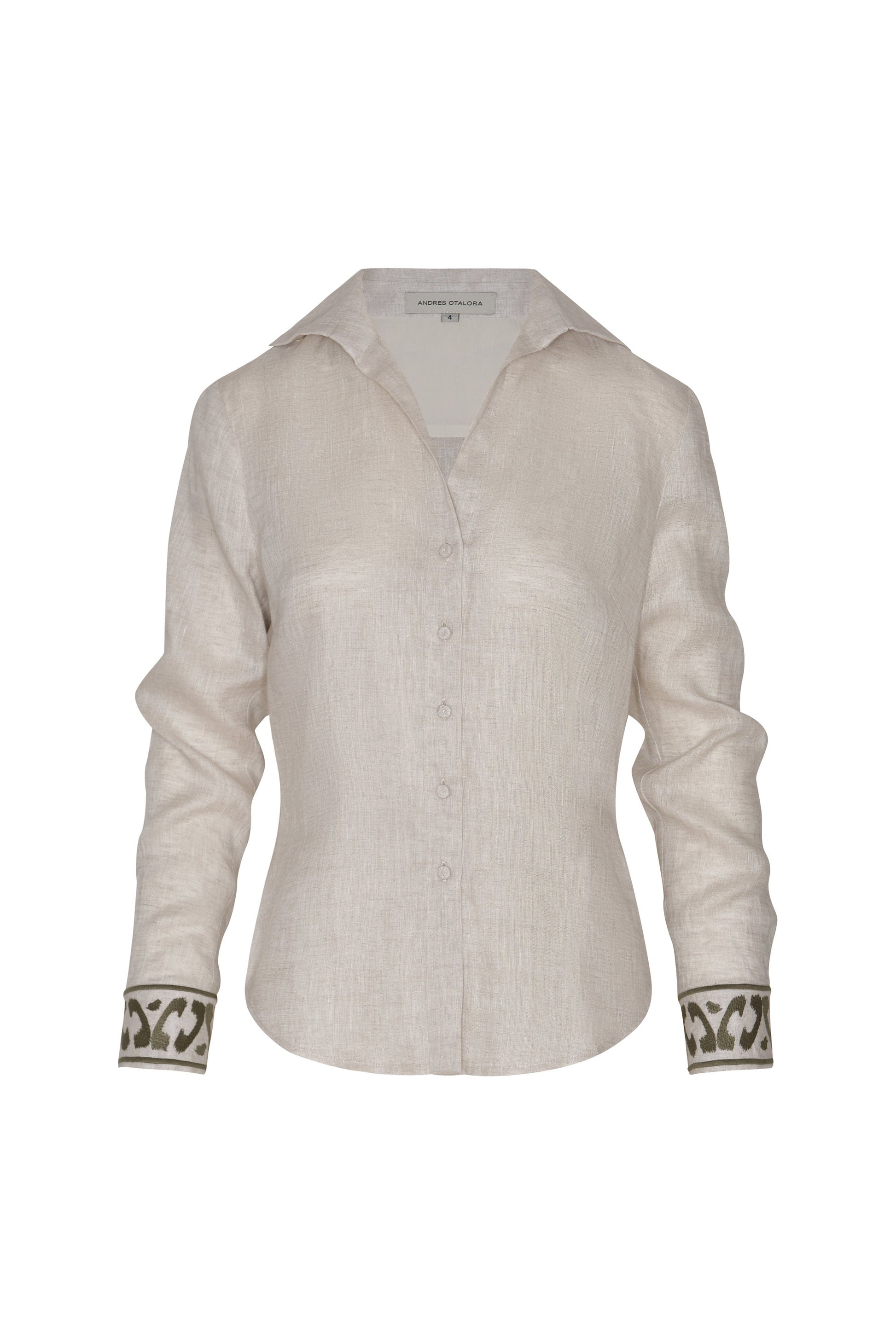 "Murmullo de Ti" blouse in oatmeal, made of linen with embroidery that evokes tradition and artisanal beauty. A design that exudes elegance in every detail, designed to highlight the essence of simplicity and authenticity.