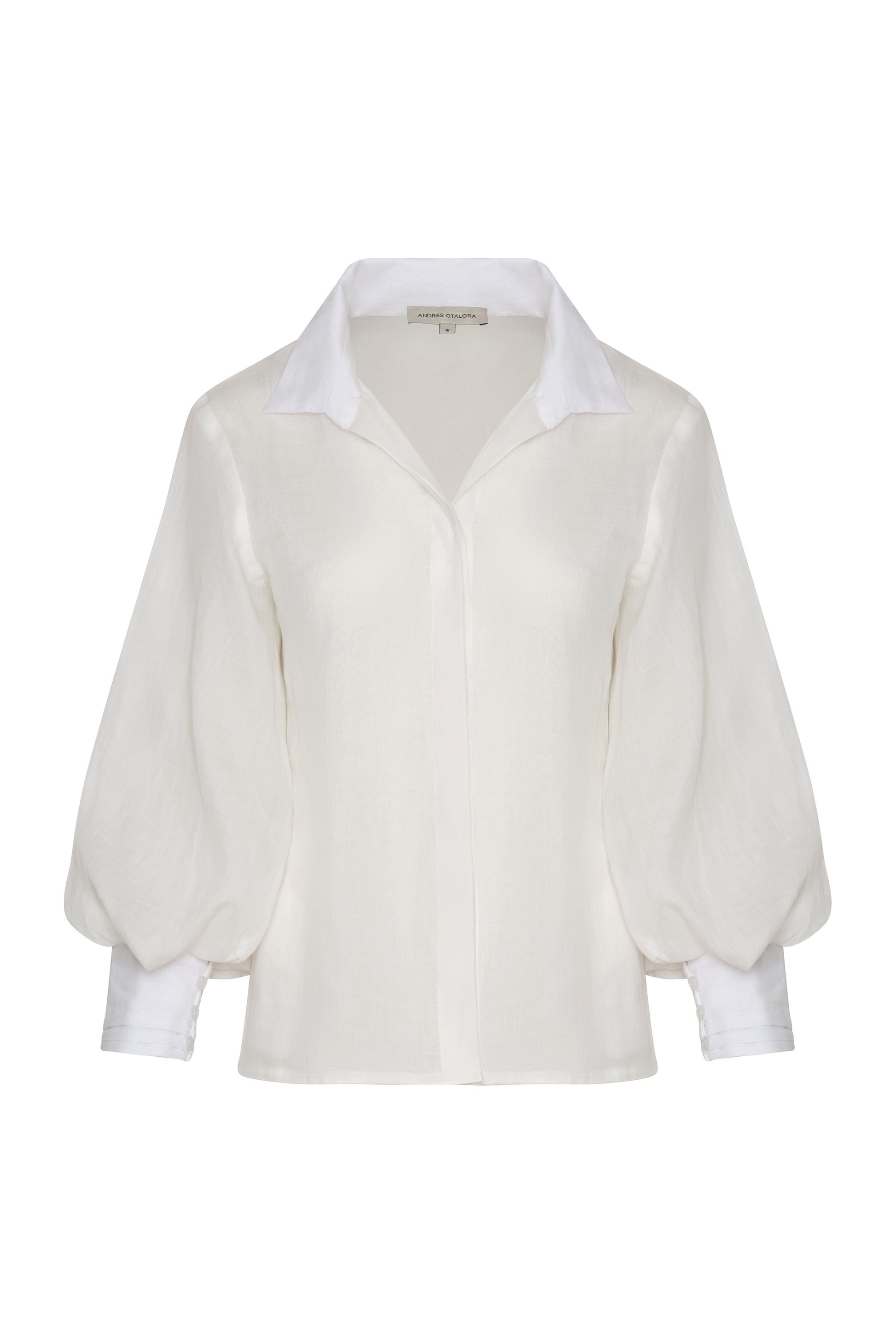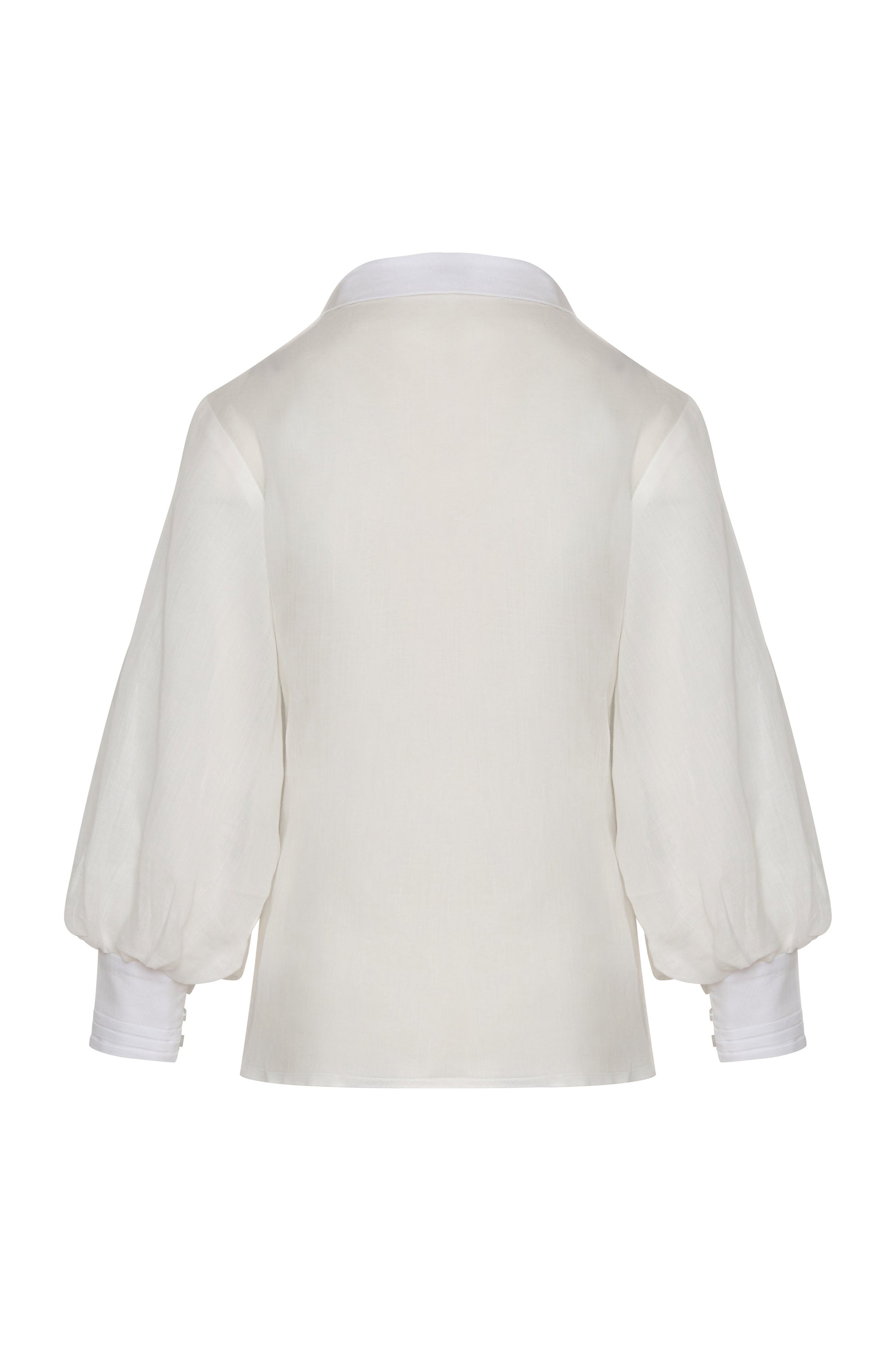 Off-white linen blouse. Light and fresh, this blouse evokes the delicacy and natural simplicity of a garden in full bloom.