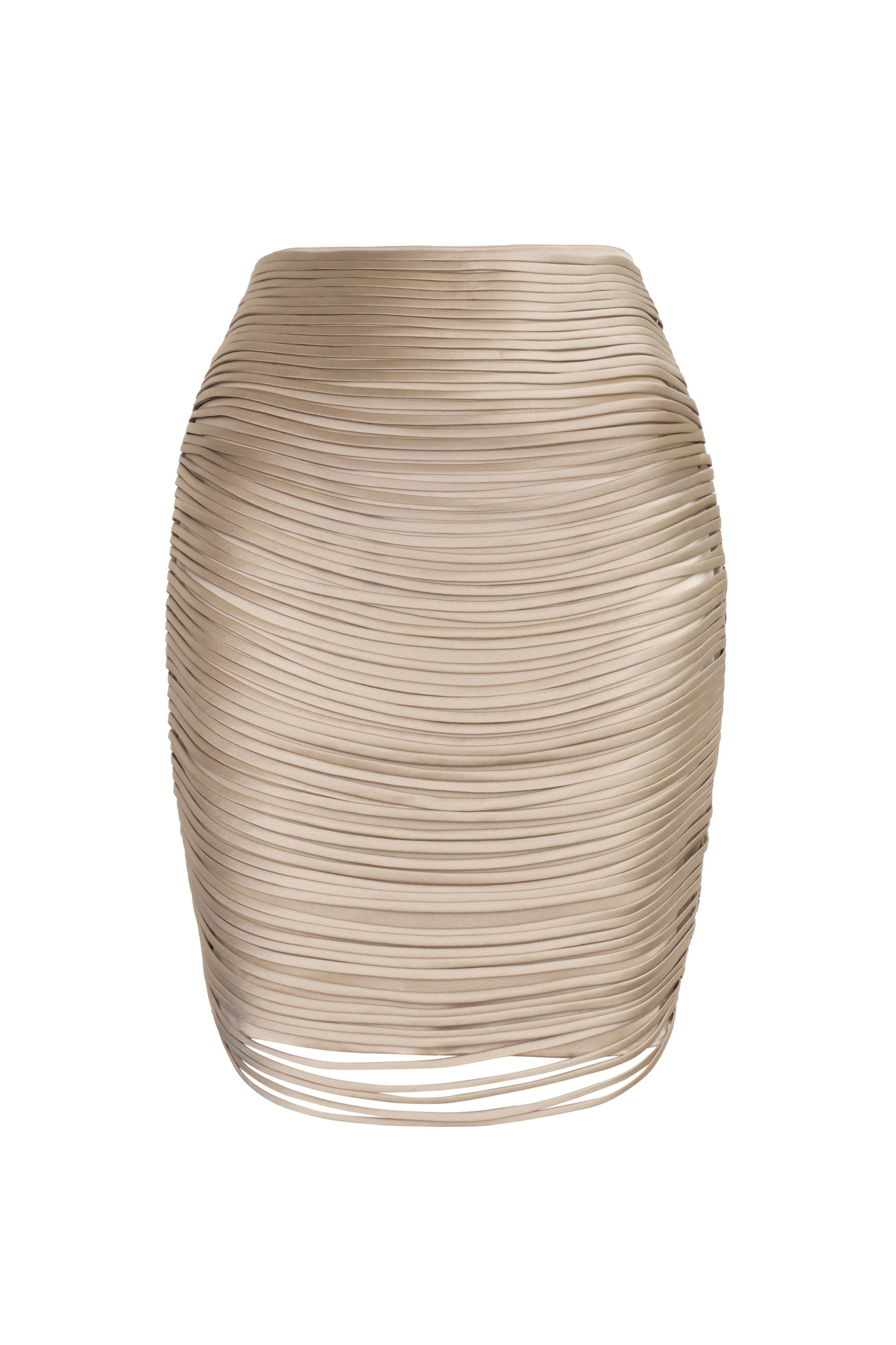 With a mini silhouette and a subtle sandy hue, this skirt captures the understated sparkle of a quiet evening. Lightweight and sophisticated, it's a versatile piece with a charmingly modern feel.