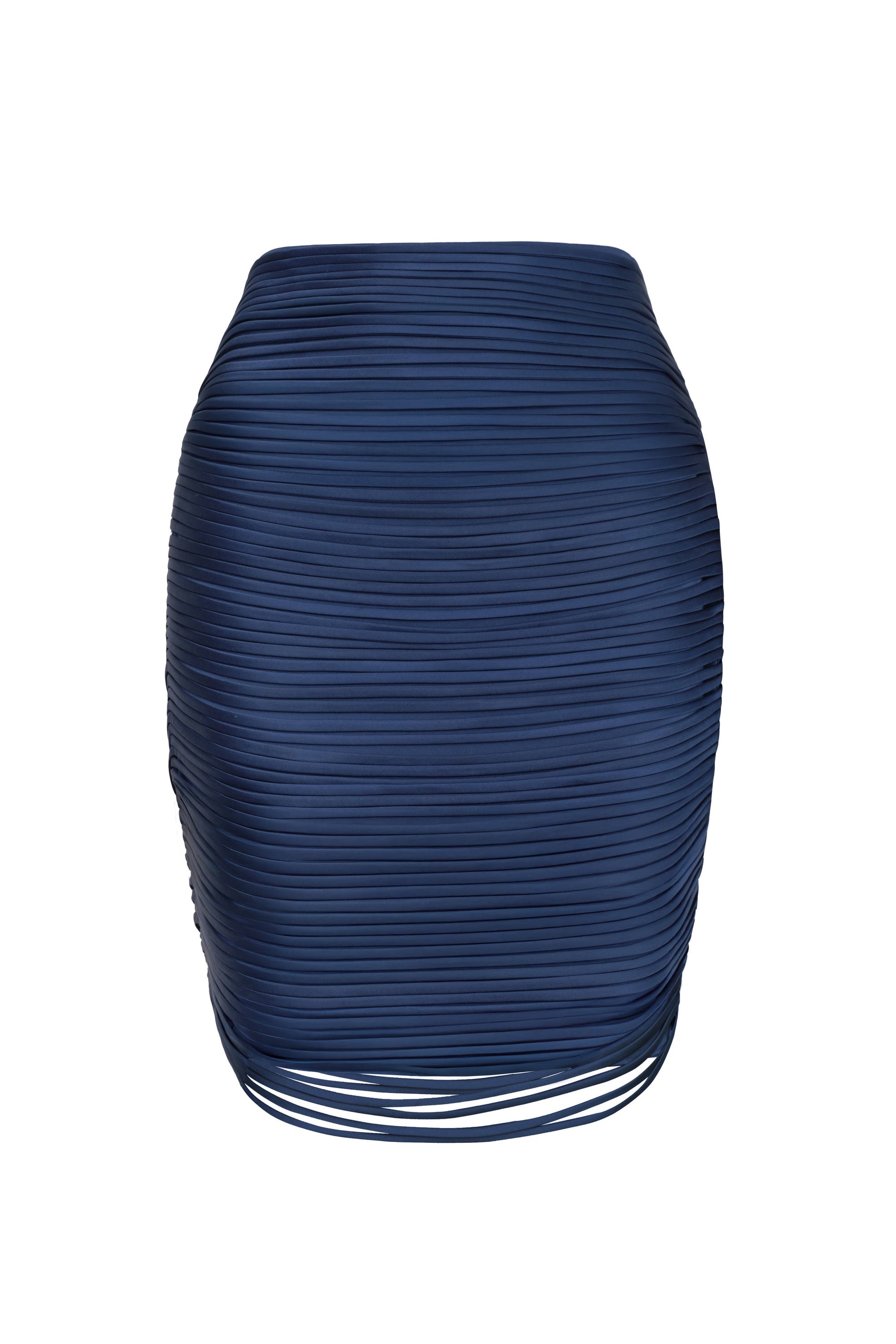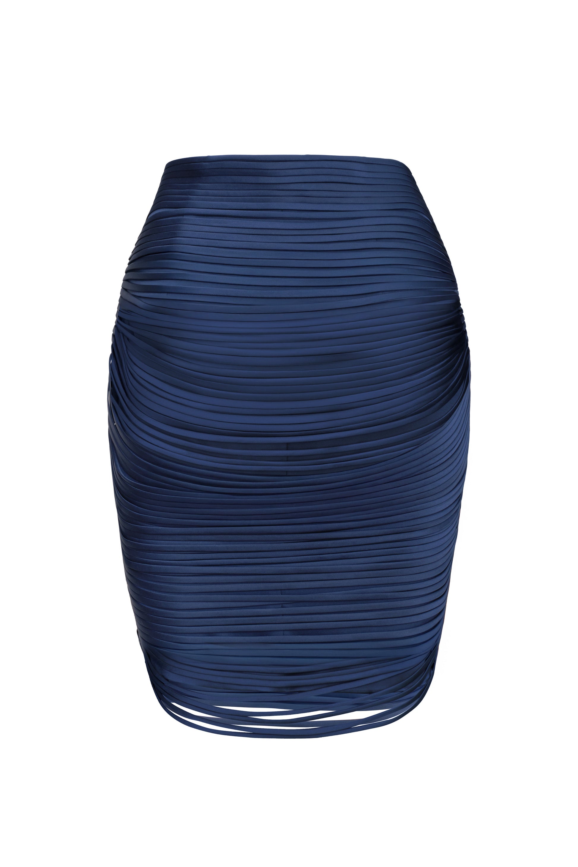 With a mini silhouette and a subtle navy hue, this skirt captures the understated sparkle of a quiet evening. Lightweight and sophisticated, it's a versatile piece with a charmingly modern feel.