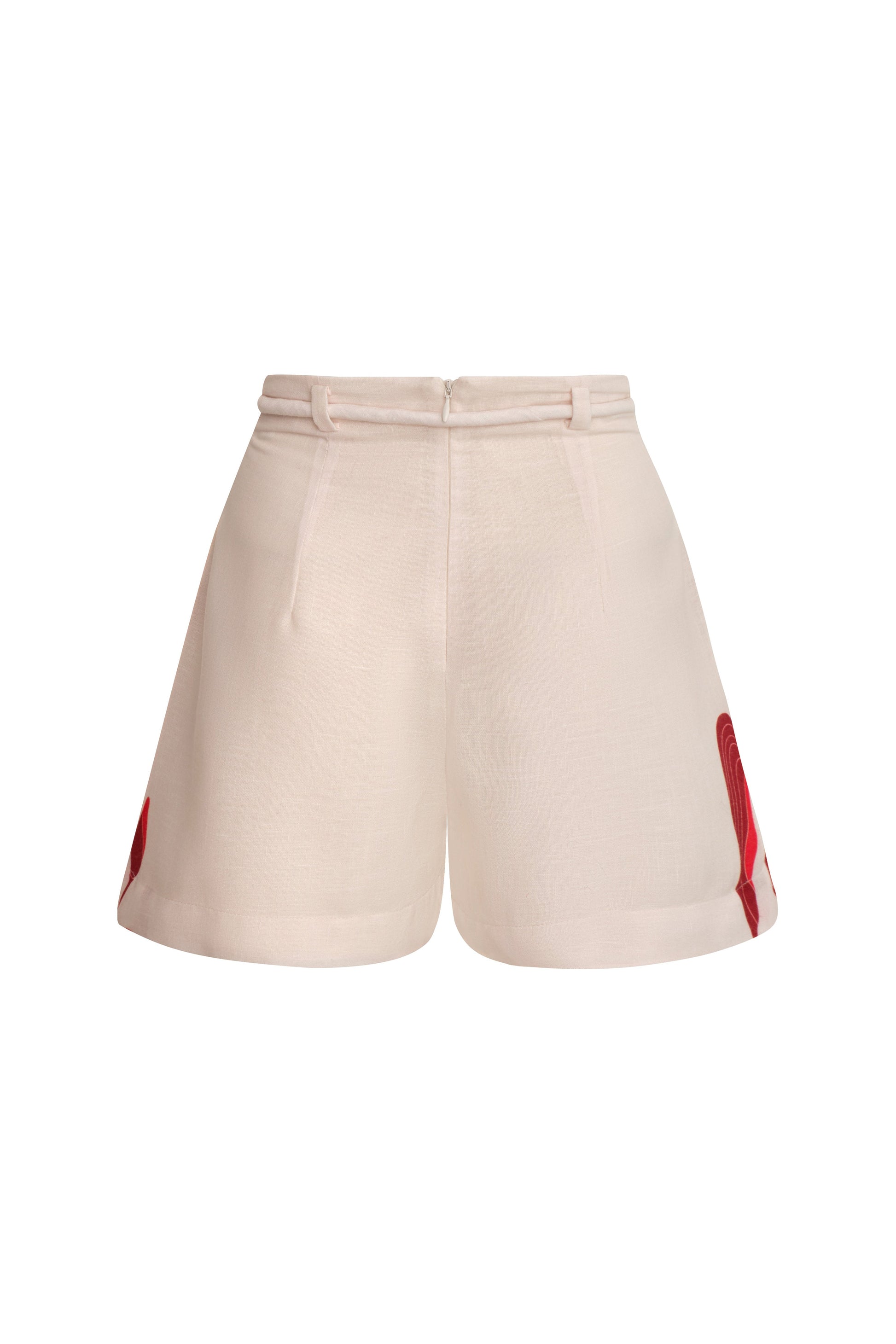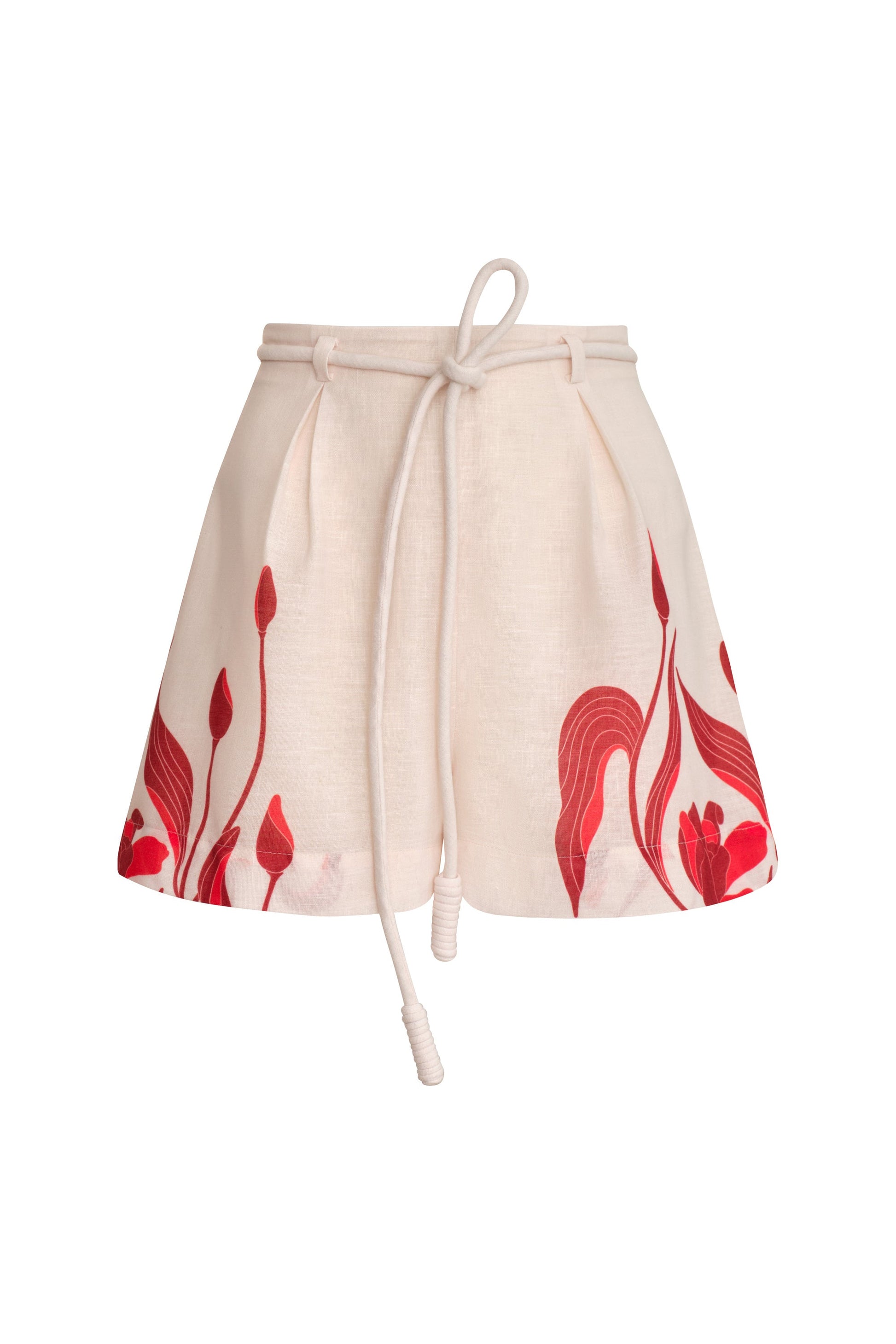 Vientos y flores shorts with belt are like a linen canvas, framing a vibrant botanical scene. The adjustable belt adds structure to the fluidity of the design for days that flow with artistry and ease.