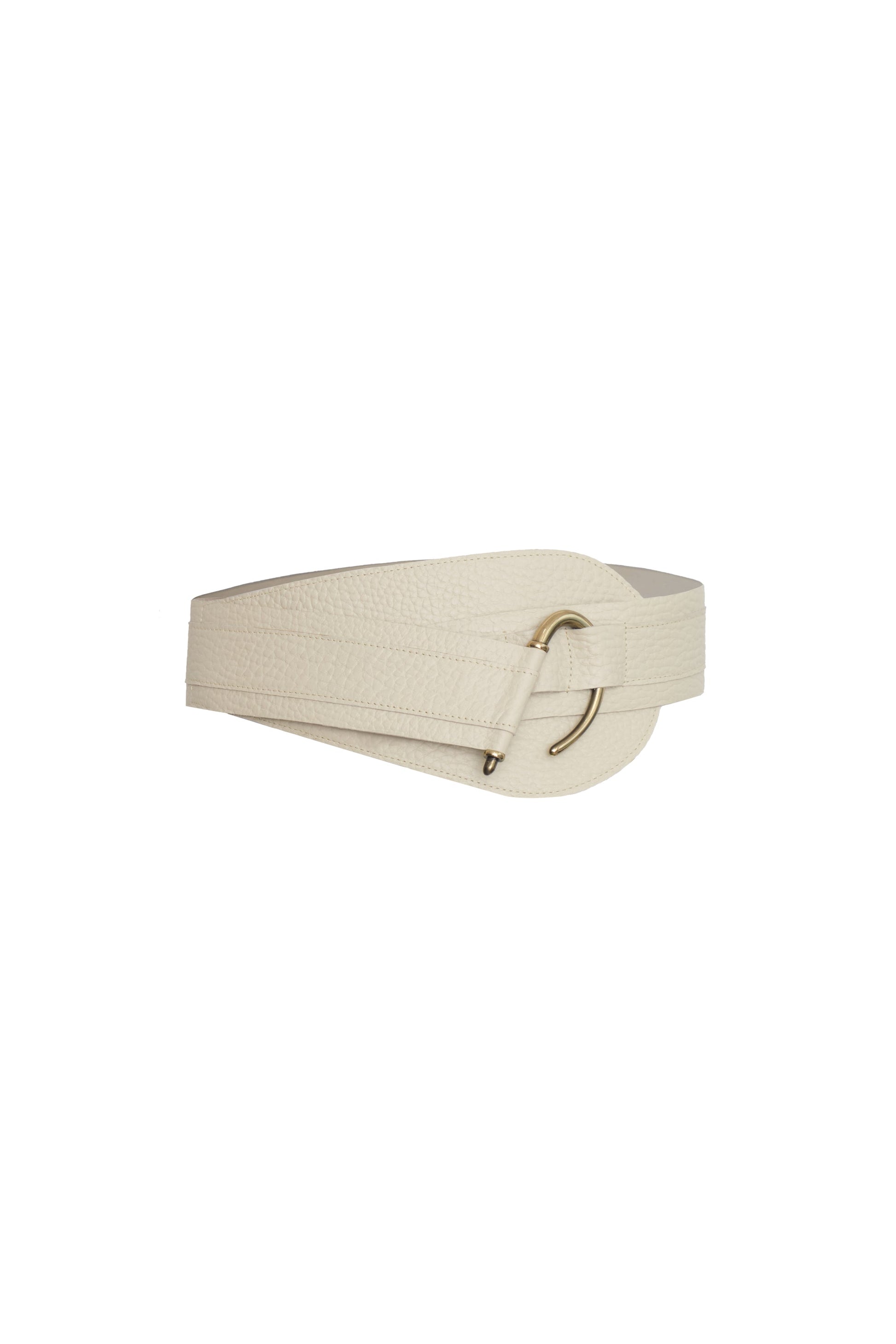 Ivory leather belt with buckle. Inspired by the strength of the classic, it adds structure and character to your looks.