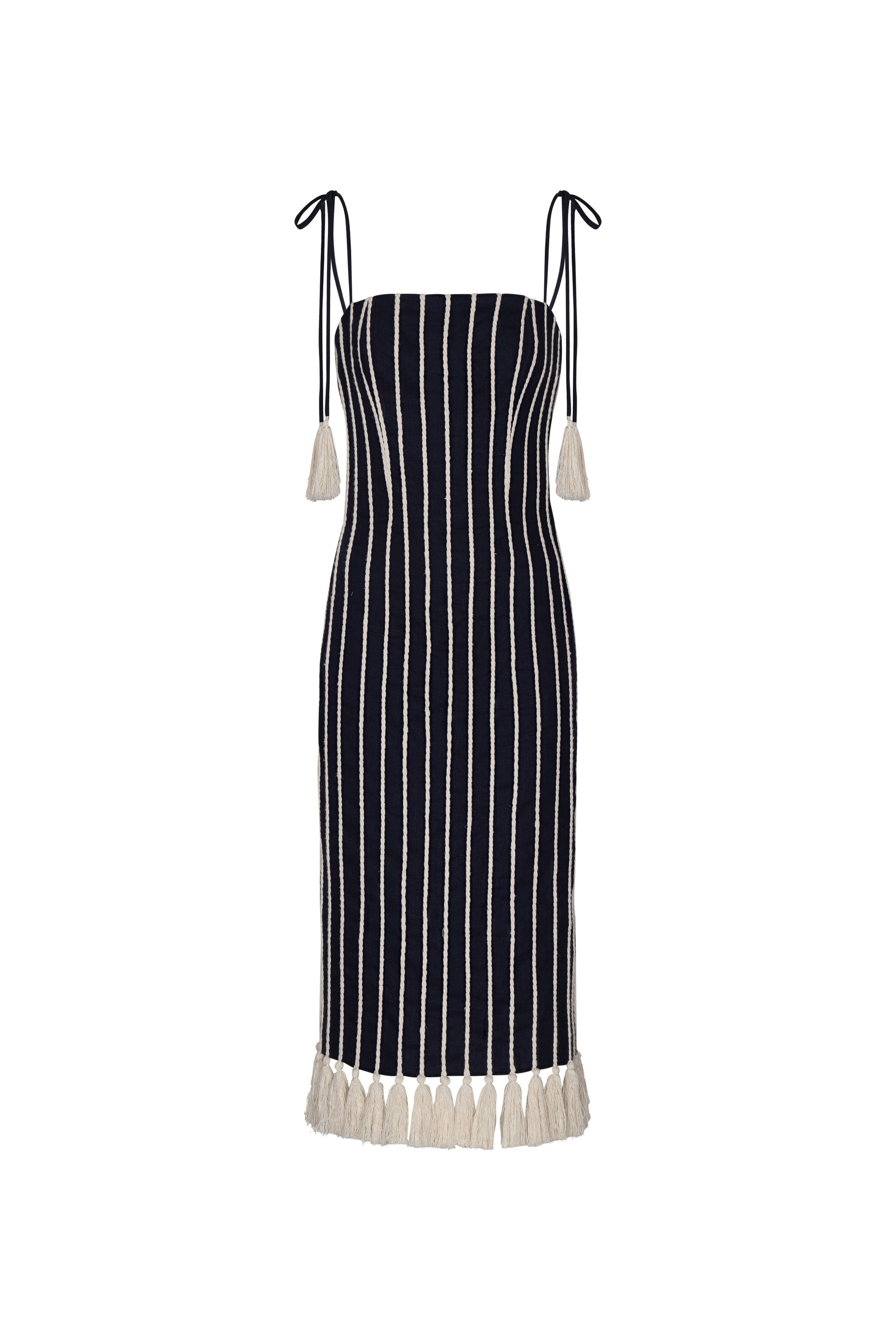The Postales midi dress is an embroidered design crafted in 100% linen. Its navy tone brings timeless elegance, while the handcrafted details evoke the calm and inspiration of the Caribbean sea.