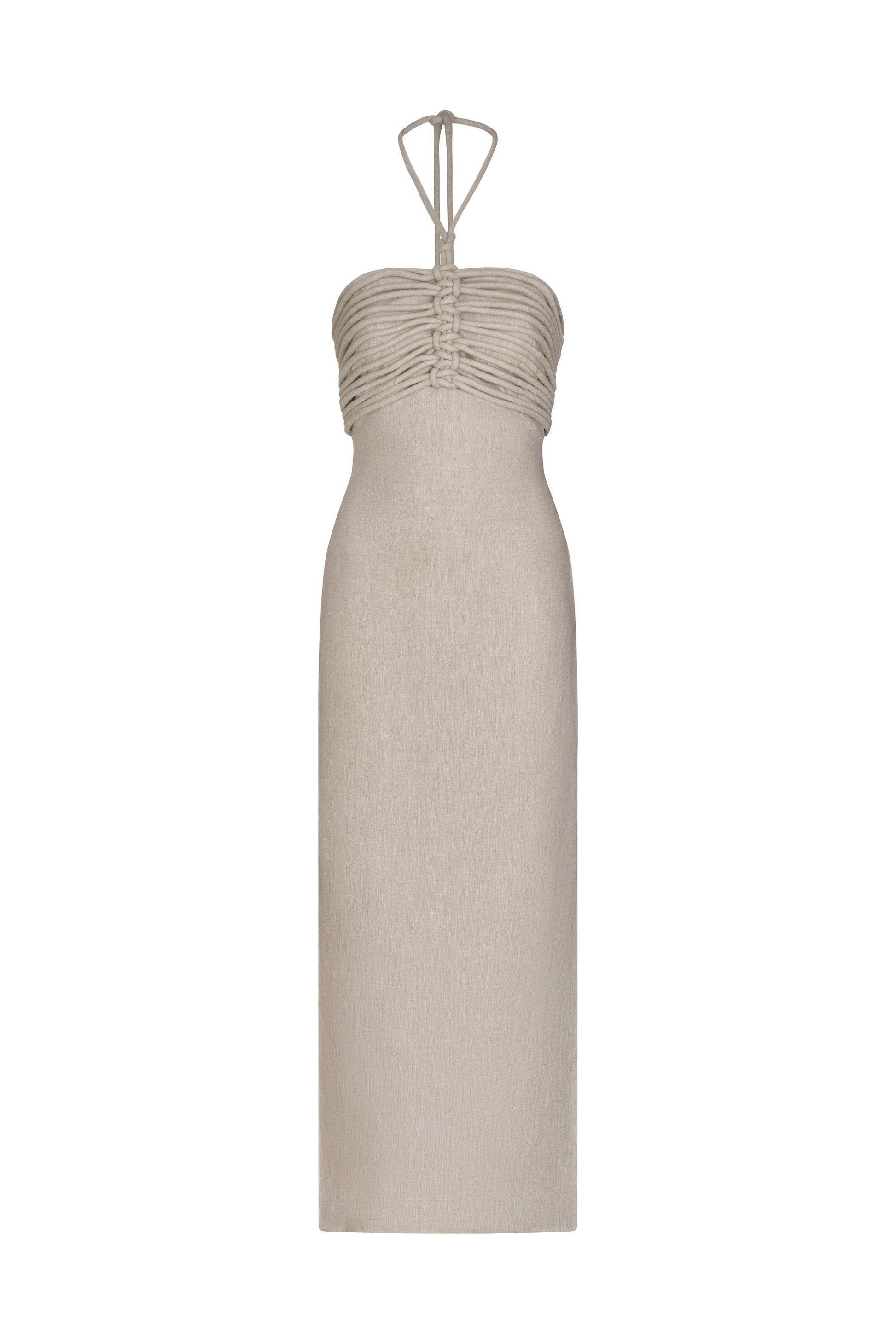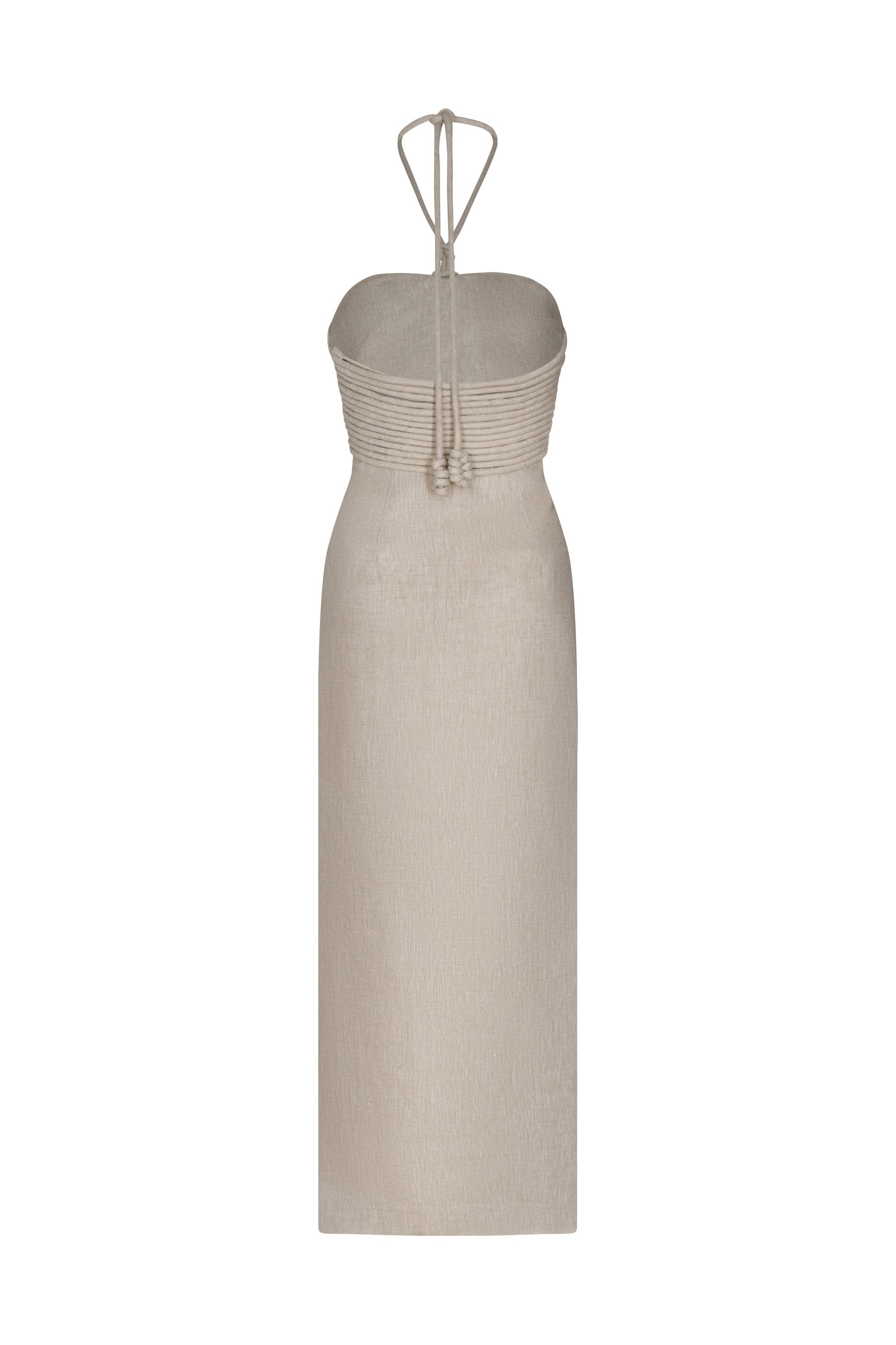 Midi dress in 100% linen, an elegant and distinctive design that reflects the artisanal essence of the collection. Its Oatmeal shade brings warmth and sophistication, ideal to stand out naturally on multiple occasions.