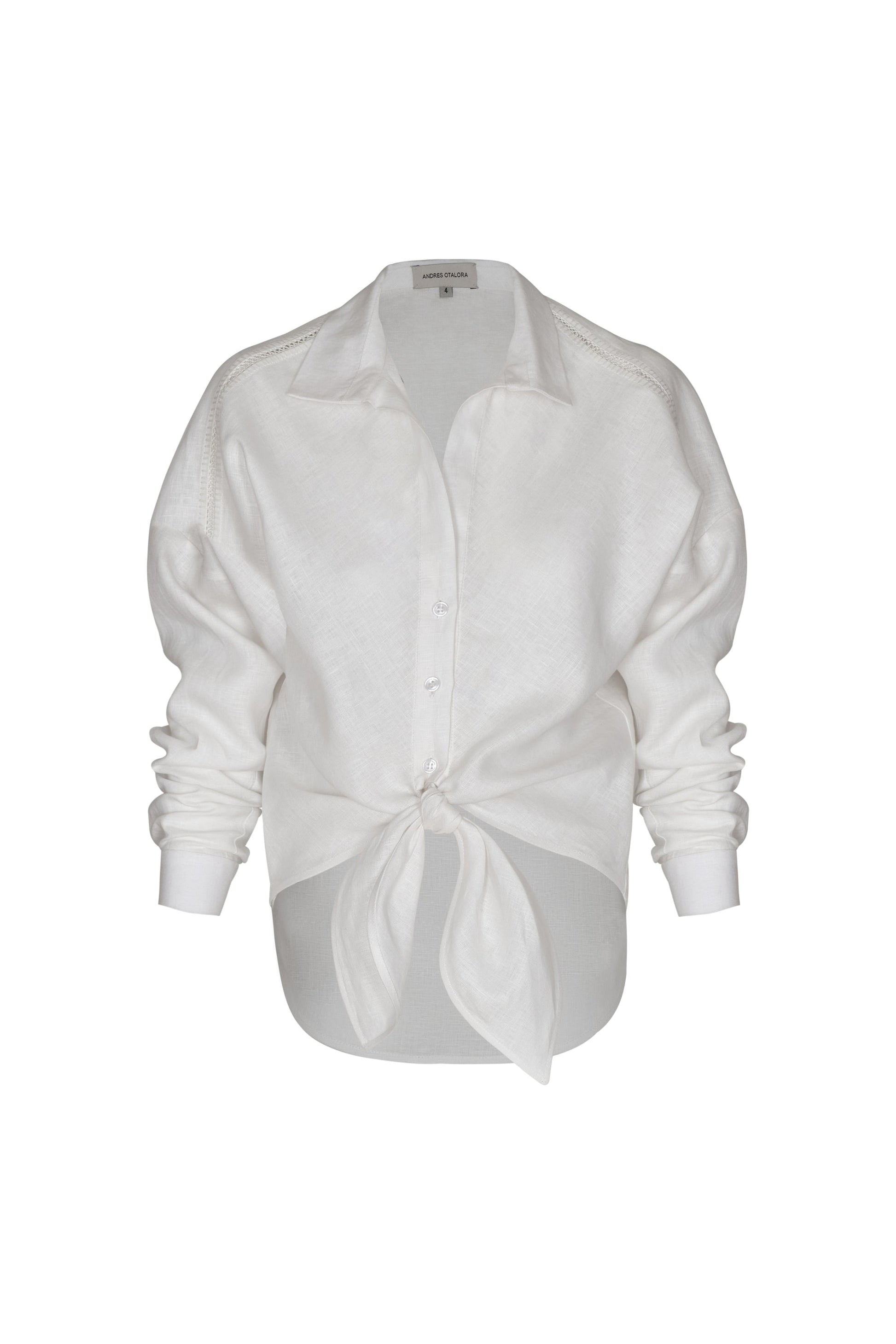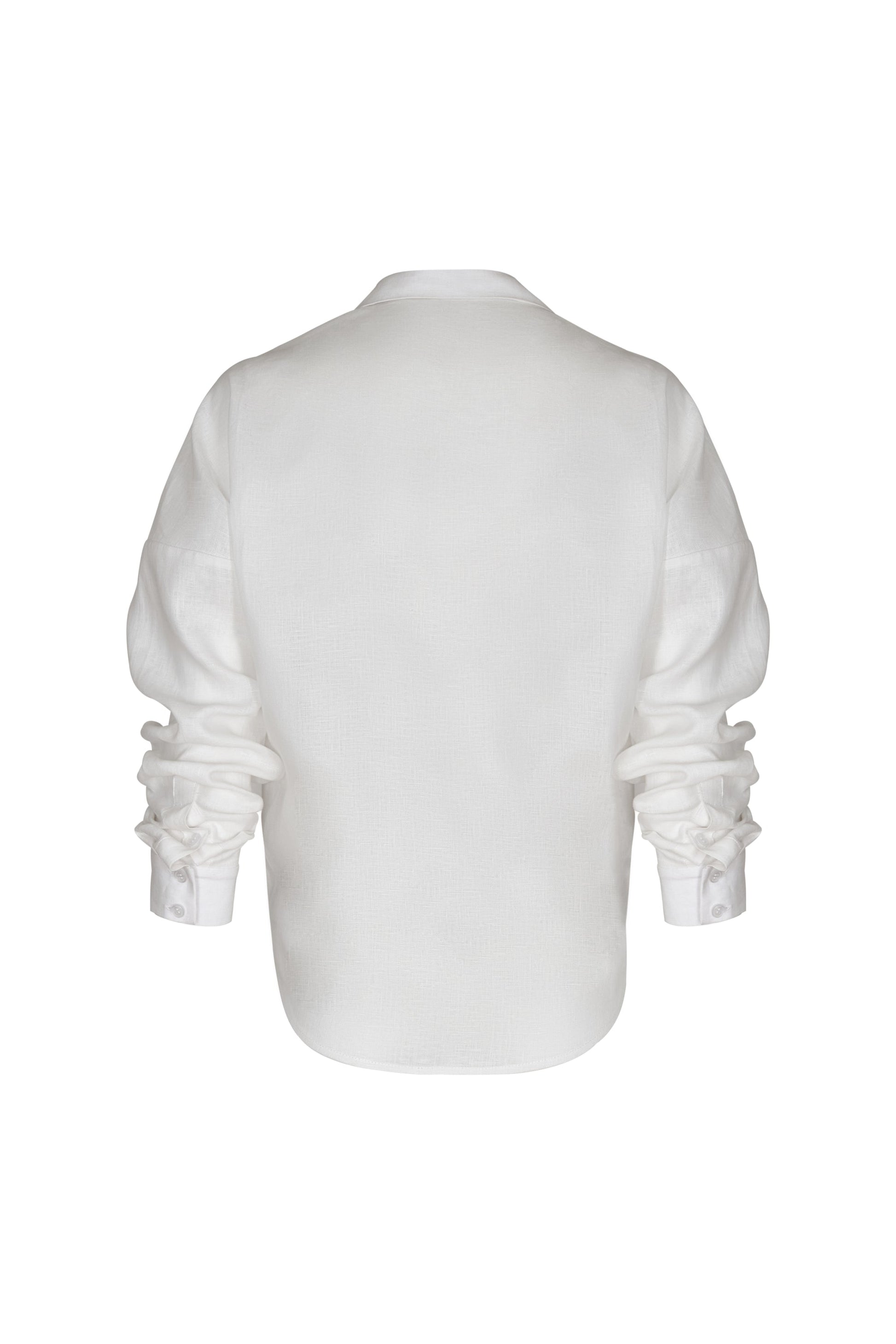 “Obsesión” is an embroidered off-white linen shirt. A fresh and delicate piece with subtle details that enhance its timeless design.