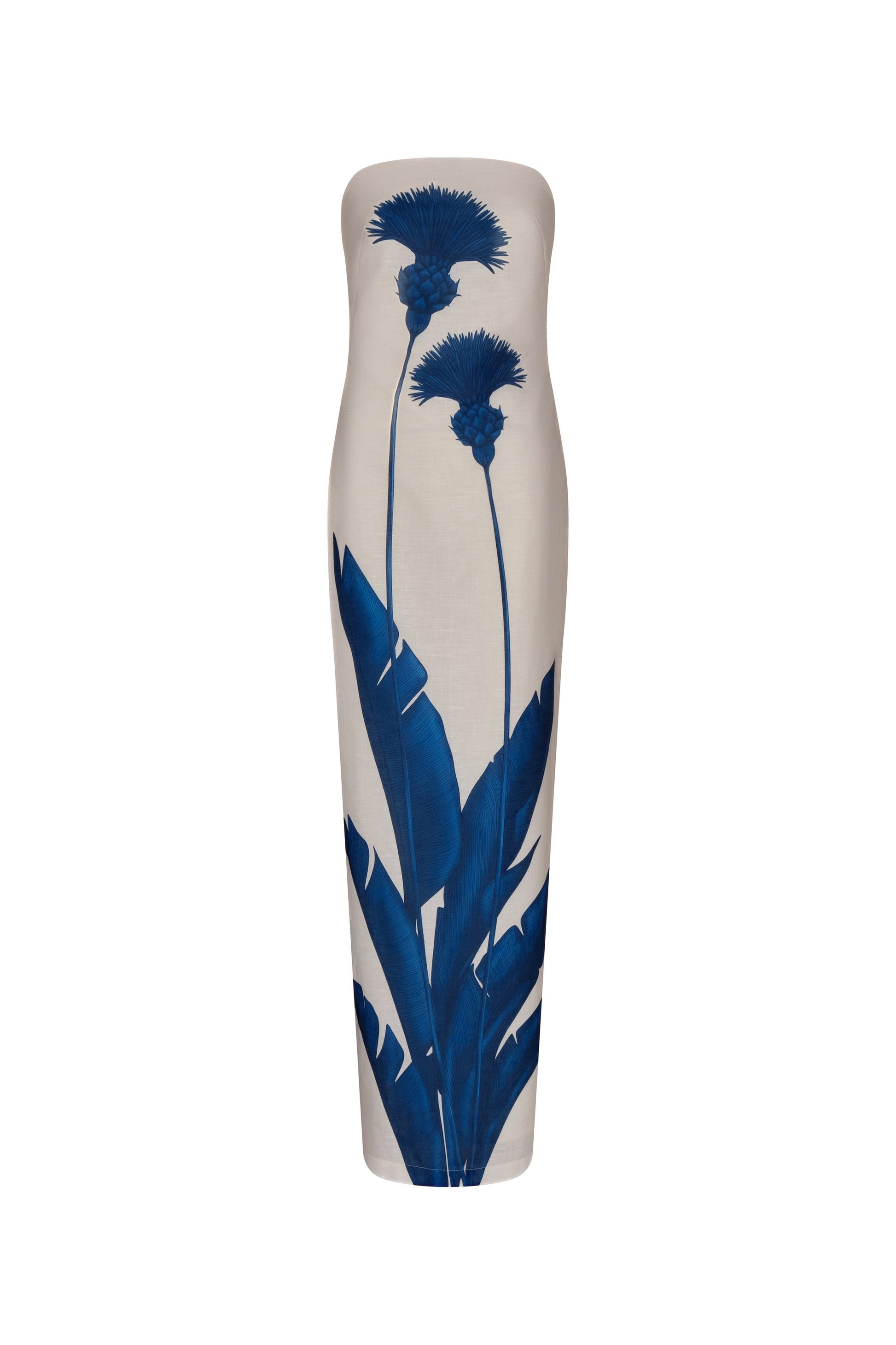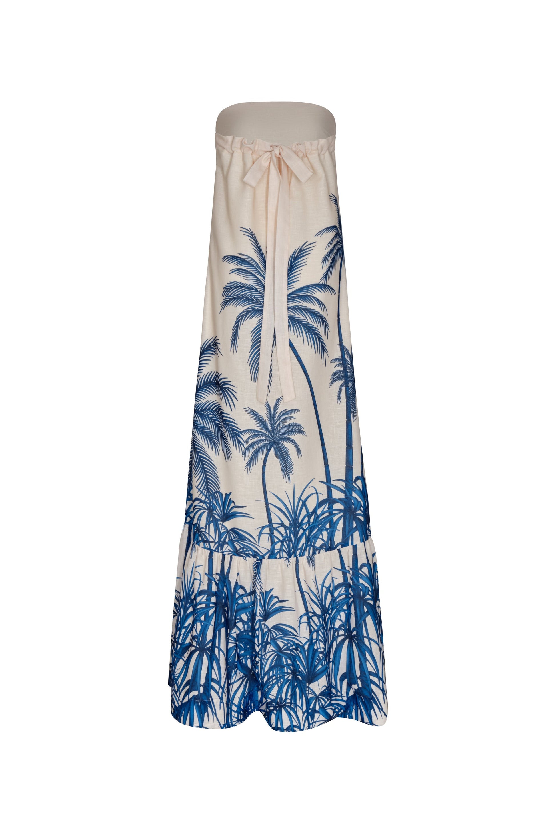 Strapless maxi linen dress, a design that flows naturally, evoking the freedom and serenity of the sea. Its Blue Dandelion hue conveys freshness and vitality in every movement, inspired by the ocean breeze.