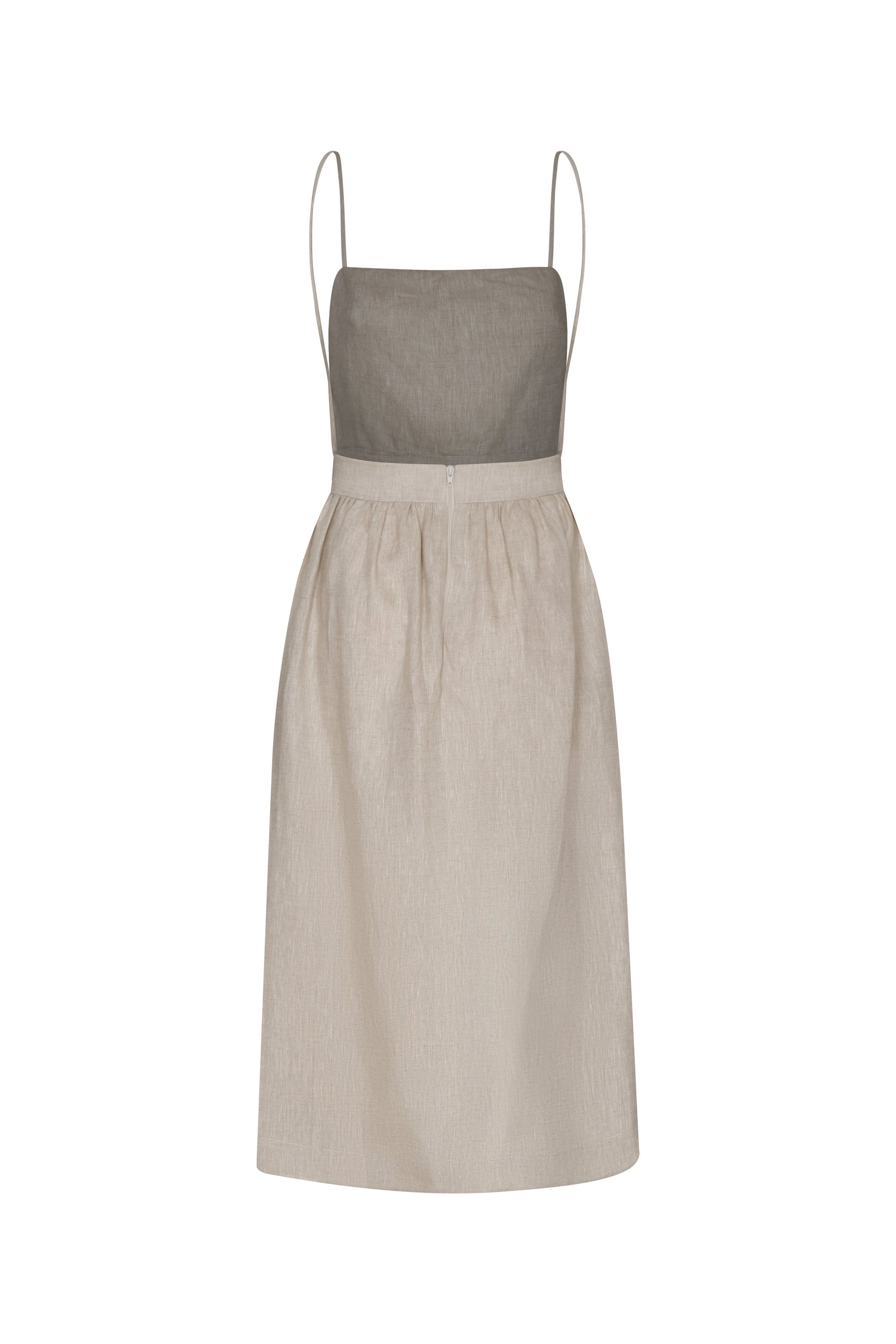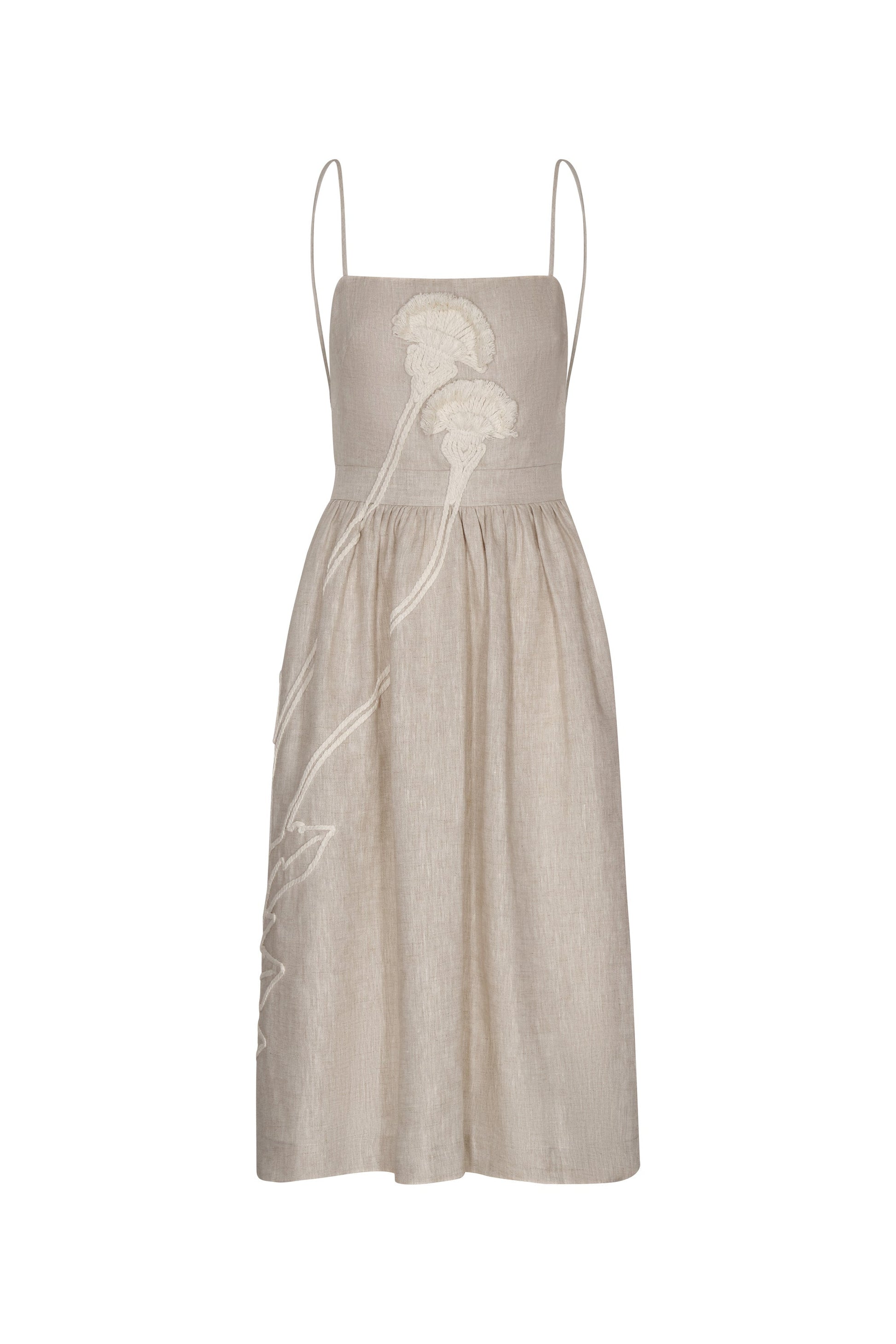 “Del Corazón” is a midi dress made of linen with delicate embroidery, inspired by the serenity of the sea and the purity of nature.