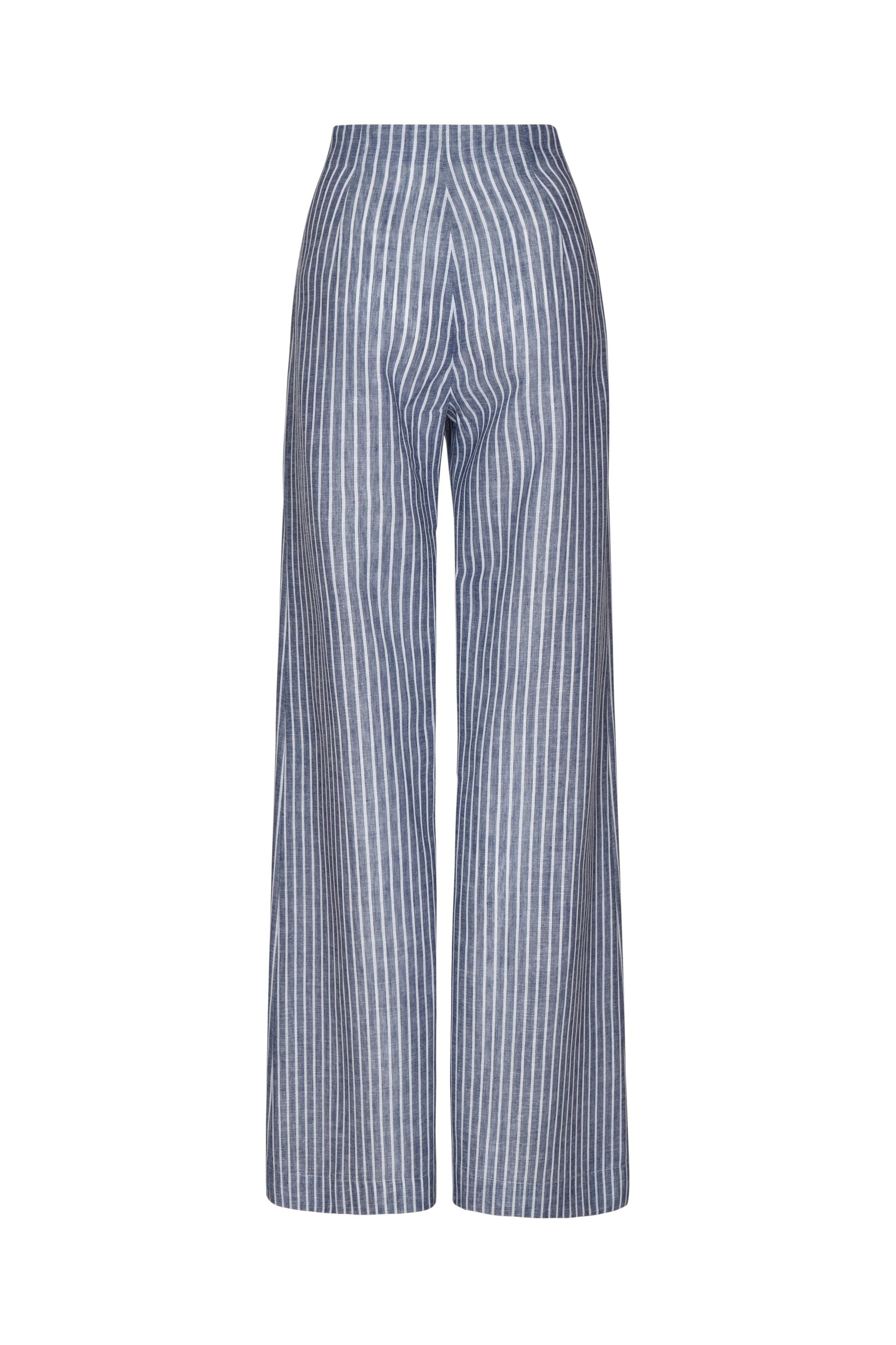 “Amor Profundo” is a striped pant in white and blue, inspired by the serene freshness of the sea. Its relaxed yet elegant cut embodies the effortless spirit of the AL MAR collection