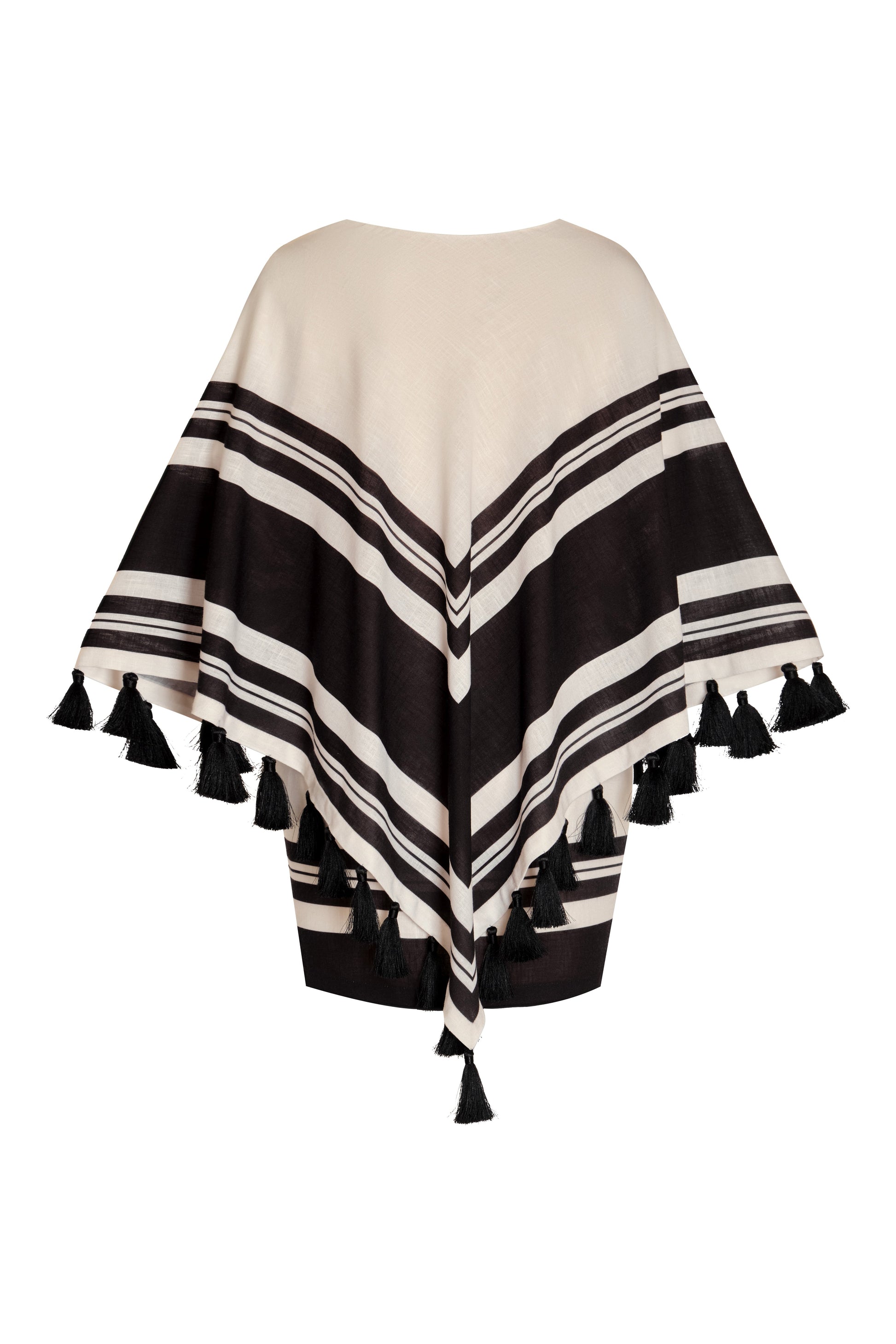 Viento Suave is a mini dress that plays with ivory and black tones, evoking the fleeting beauty of the ephemeral. Its delicate silhouette flows with ease, while the sleeves add a distinctive touch, making it a piece both subtle and unique.